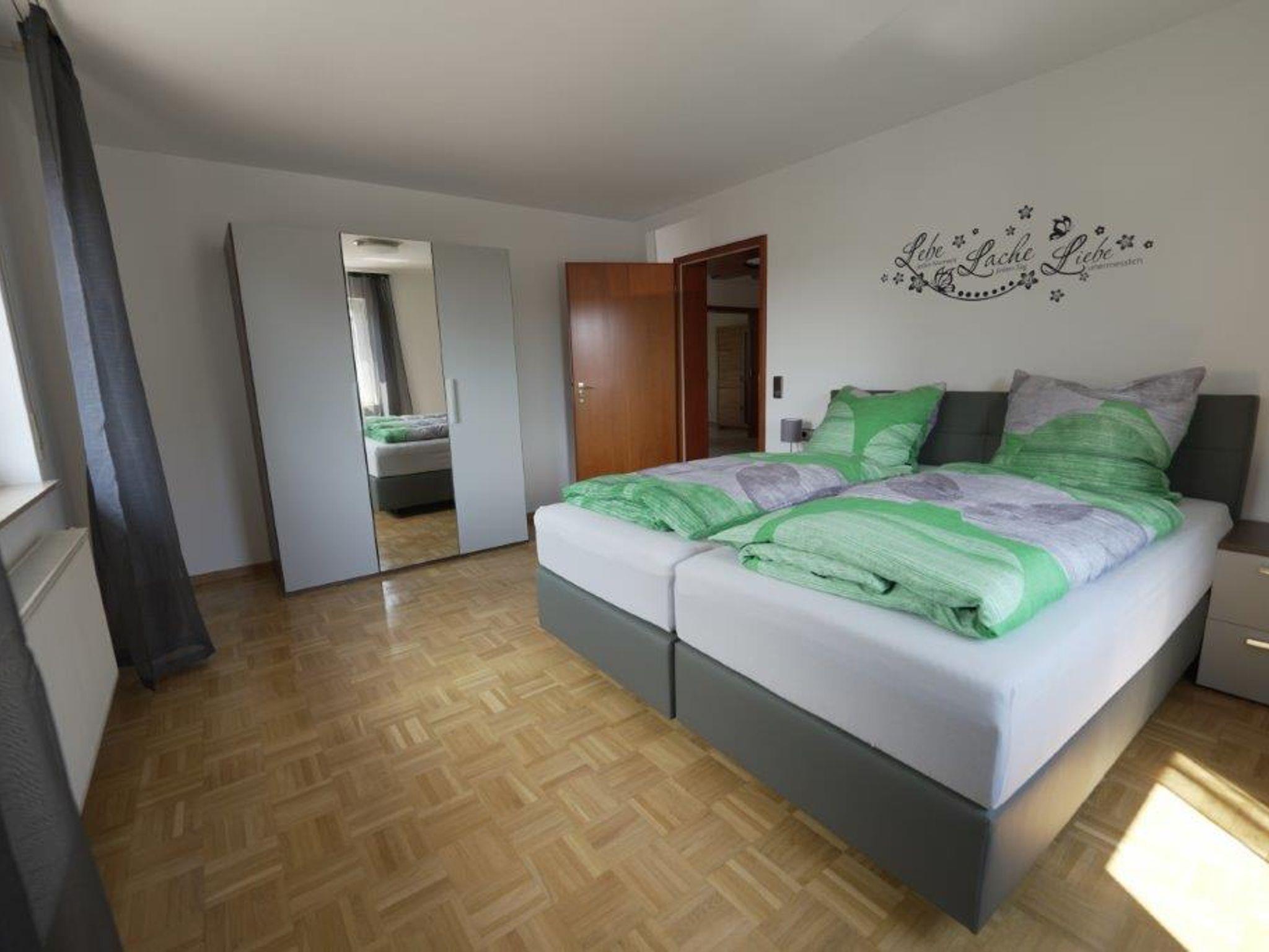 Sie betreten die Wohnung über eine großzügige Diele. Von dort gelangen sie in alle Räume. Die Wohnung hat eine Küche mit einem separaten Esszimmer. Ein Schlafzimmer ist mit einem Boxspring-Doppelbett, das andere Schlafzimmer mit zwei Boxspring-Einzelbetten ausgestattet.