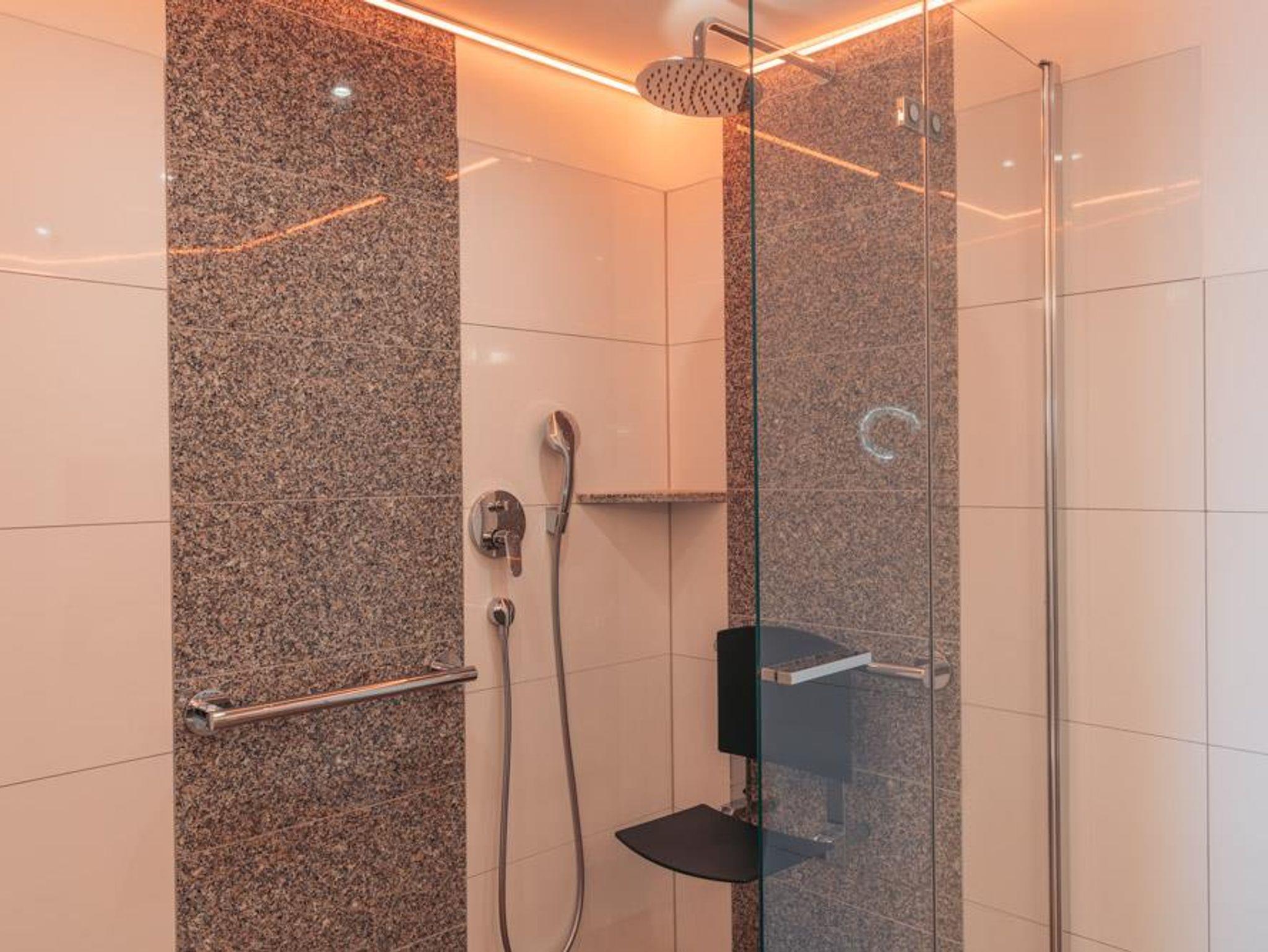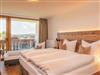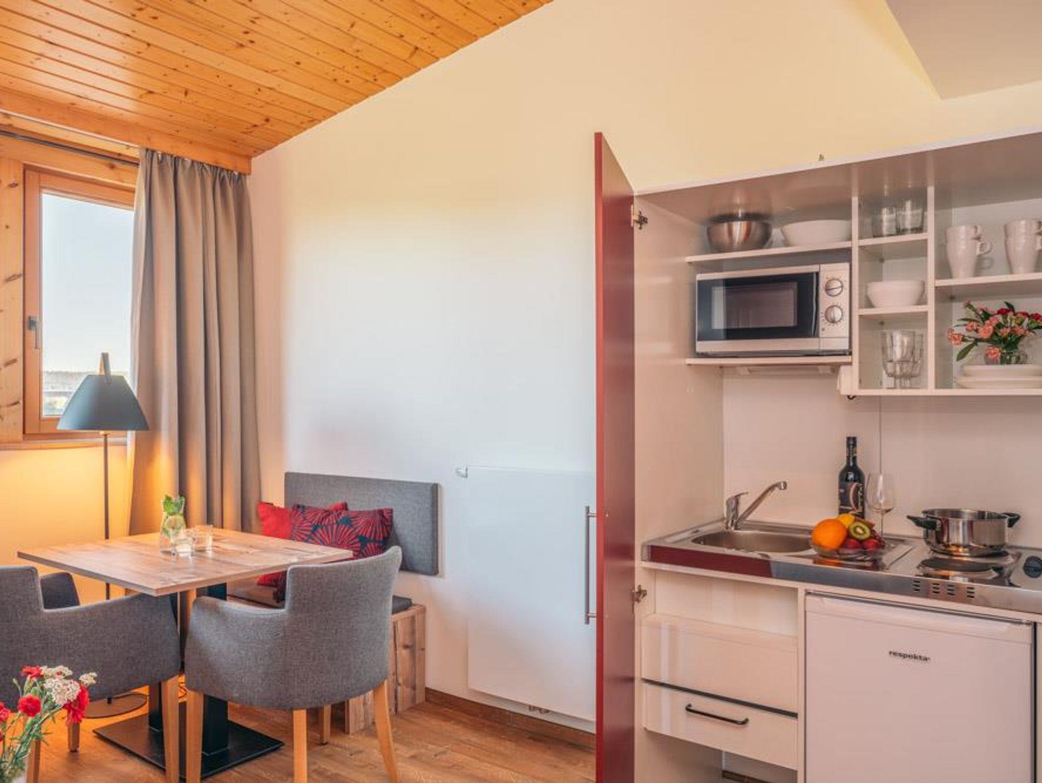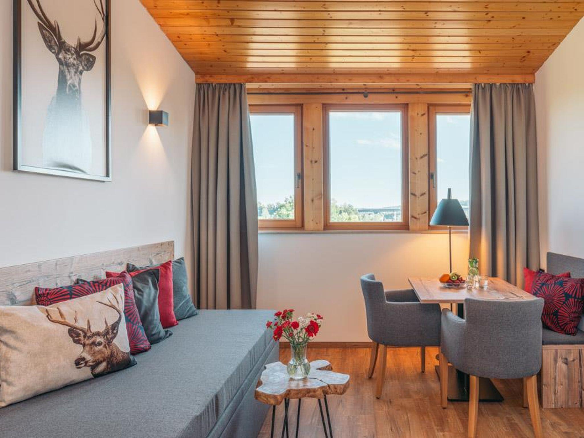 Die Wohnung verfügt auf 65 qm über zwei separate Schlafzimmer, einen Flur und eine Wohn-Ess-Küche. Die Schlafzimmer bieten einen Balkon mit Südblick, ein 180 cm x 200 cm großes Doppelbett, ein eigenes Badezimmer, einen Schreibtisch mit TV, einen Kleiderschrank mit Gepäckablage, einen Ganzkörperspiegel und einen bequemen Loungesessel um die herrliche Aussicht zu genießen. Die Wohn-Ess-Küche ist voll ausgestattet mit Elektrogeräten, Spülmaschine, Essecke und ermöglicht den Zugang auf die Liegewiese über eine eigene Terrasse. Durch die herrlichen Panoramafenster können Sie den Blick nach draußen genießen.