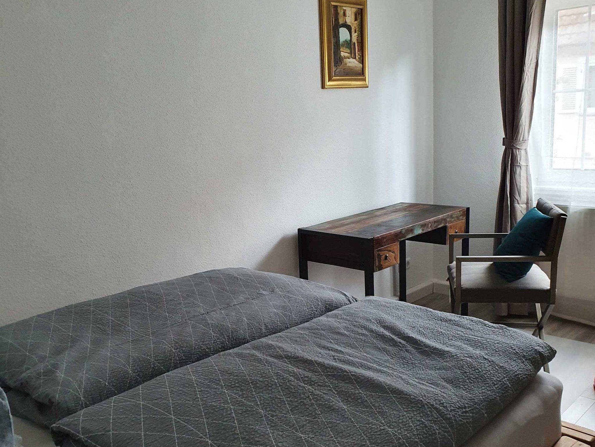 Abgeschlossene Ferienwohnung mit 2 Schlafzimmern, Wohnzimmer, Bad, Küche, Flur. Im Haus befindet sich ein Waschkeller mit einer Waschmaschine sowie einem Trockner, die Sie kostenfrei nutzen können. Eigener Parkplatz direkt vor der Tür.