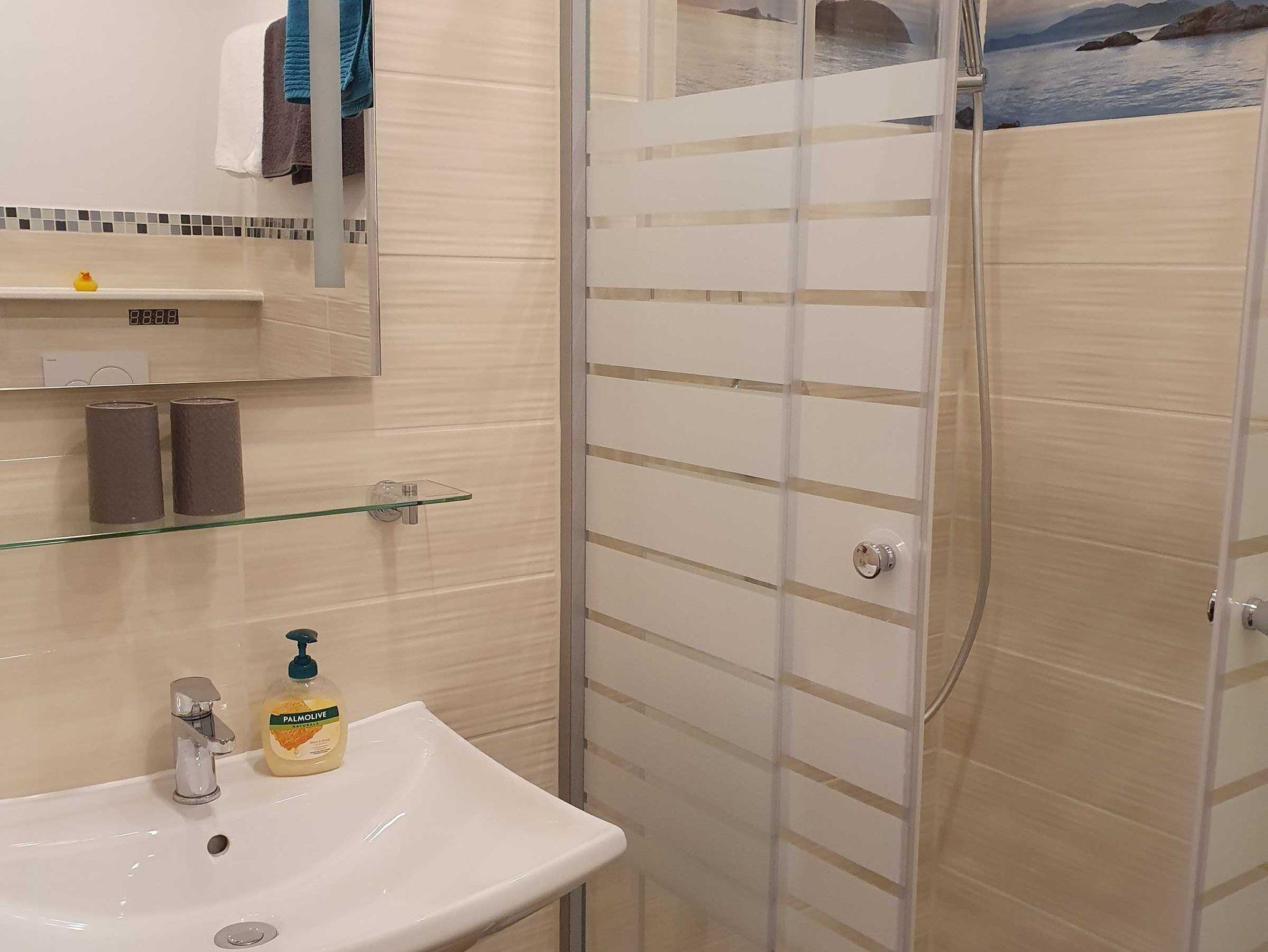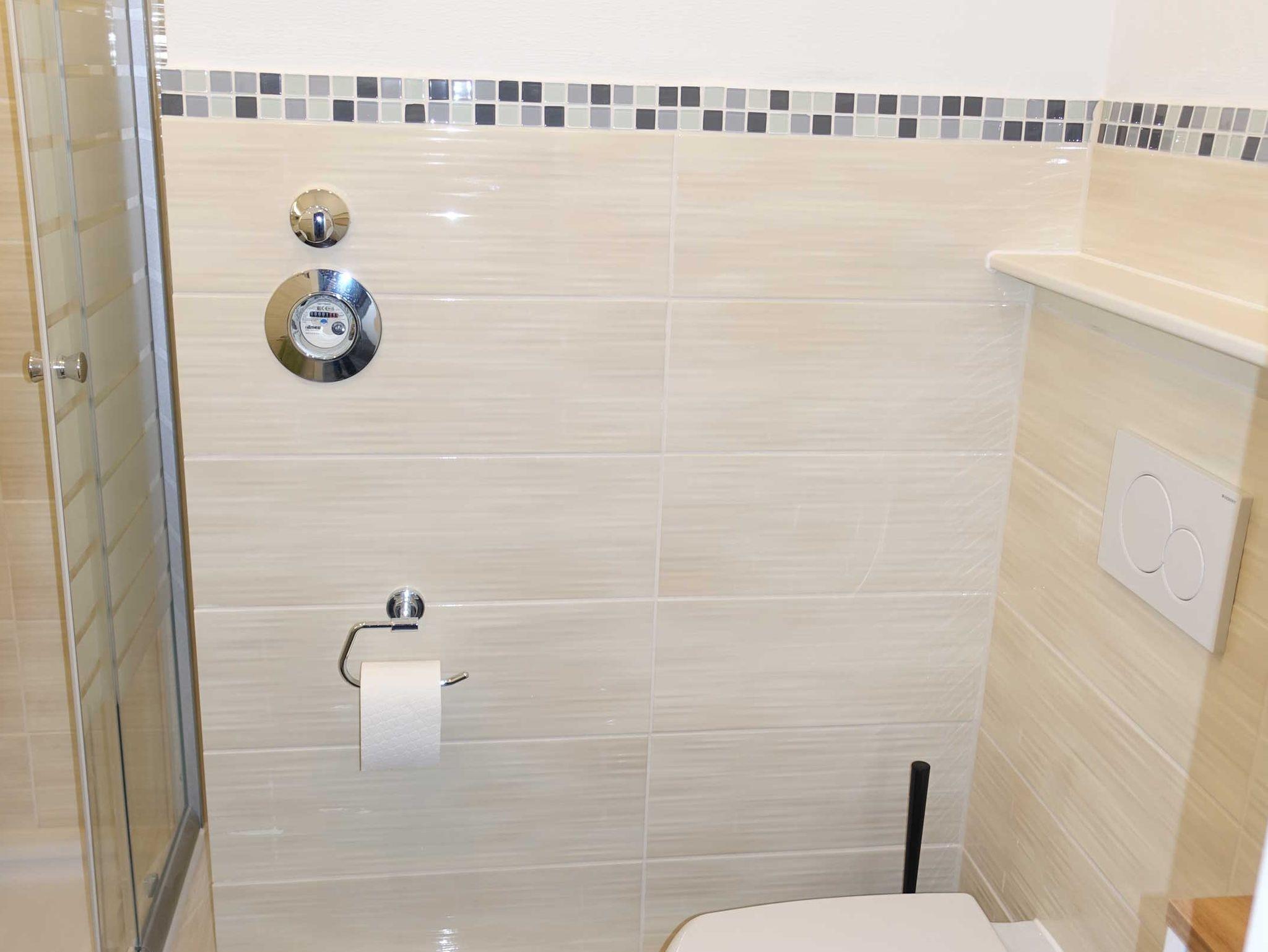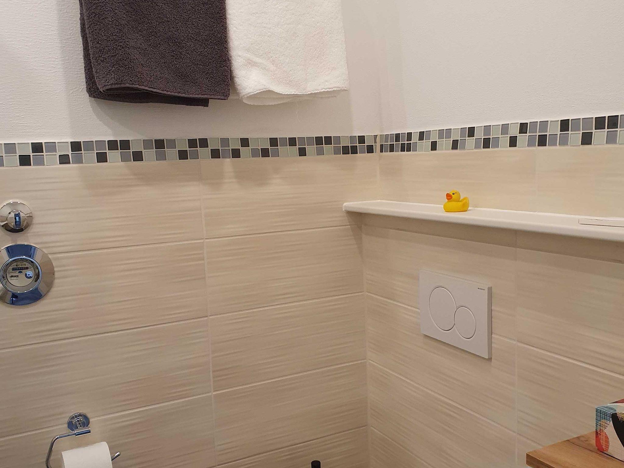 Das kleine aber gemütliche Badezimmer verfügt über Dusche, WC und Waschbecken, Toilettenpapier und ein Handtuchset stehen Ihnen selbstverständlich kostenlos zur Verfügung.