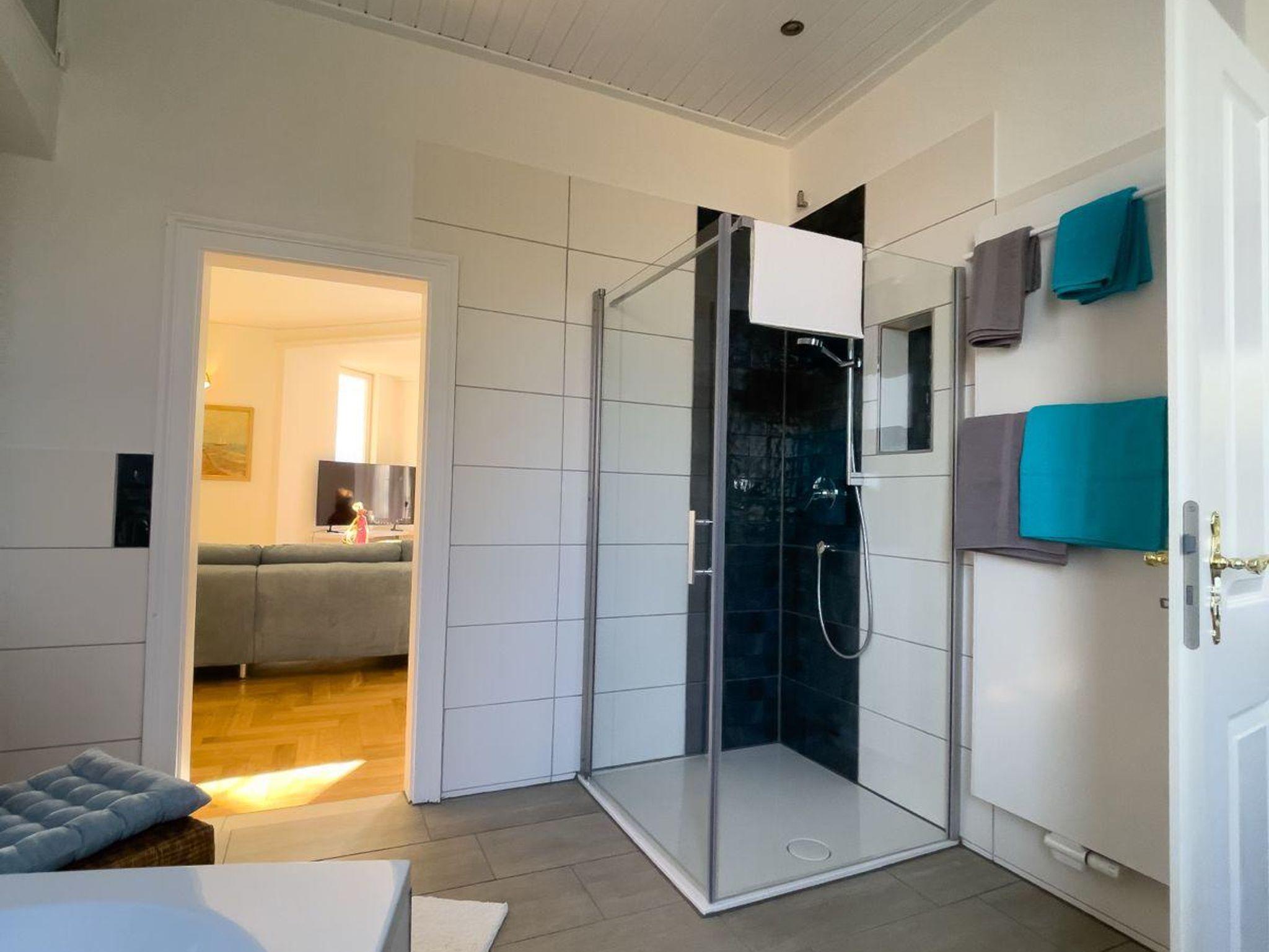 1 Schlafzimmer mit Boxspring-Doppelbett 160x200, Bad mit Dusche und Badewanne & WC