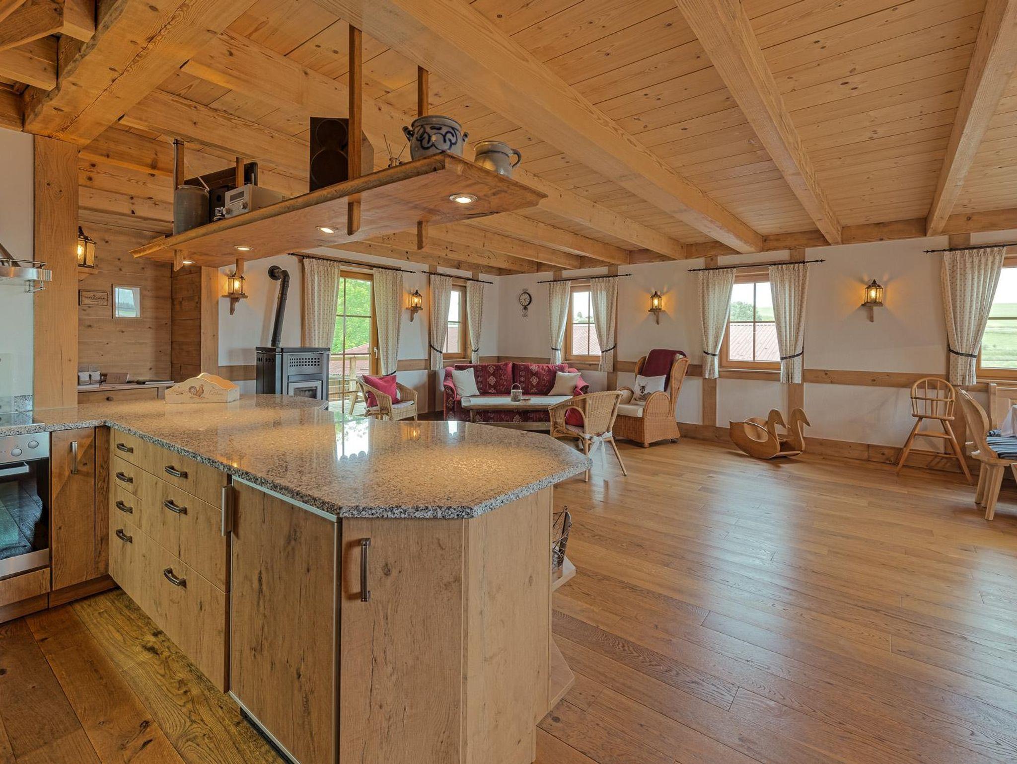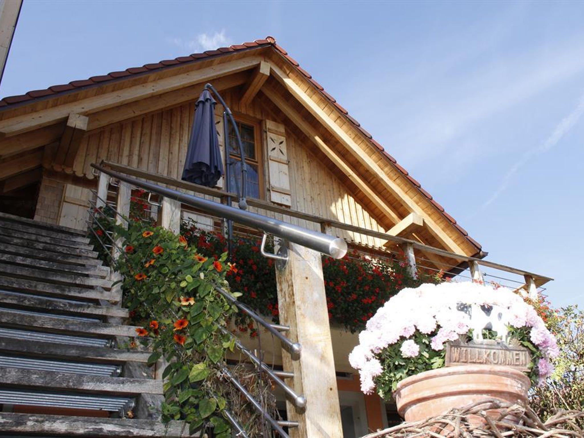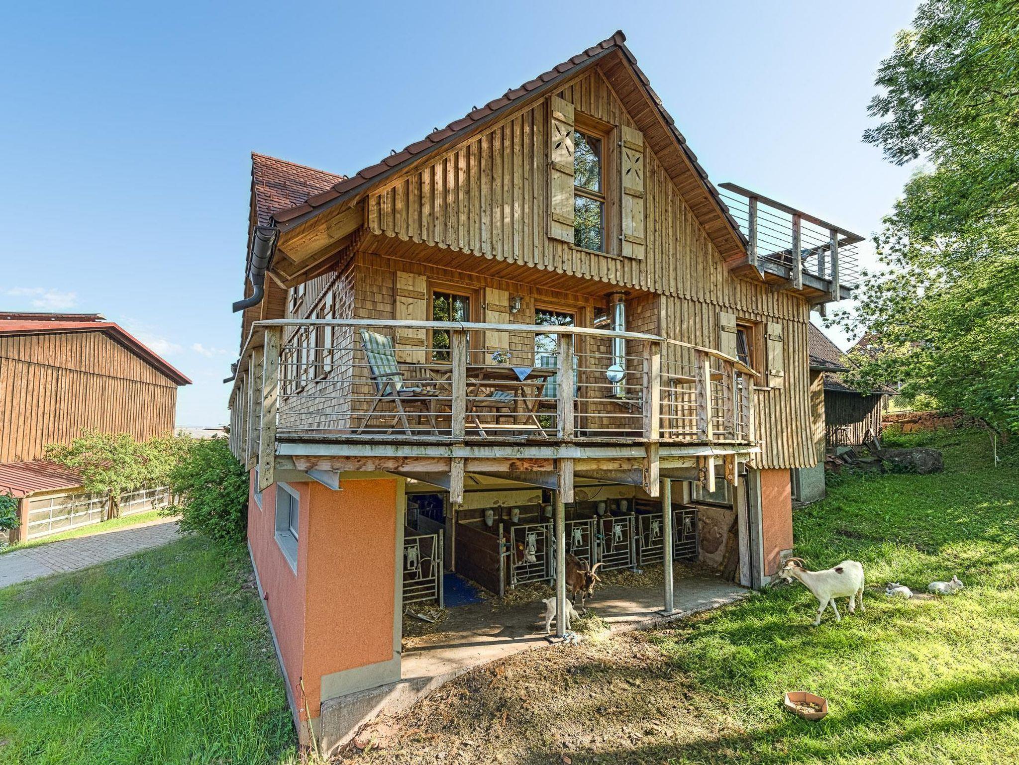 Landleben live erleben und genießen im idyllisch gelegenen Teilort Frutenhof. Unvergessliche Ferien für die ganze Familie bietet unser Bauernhof mit Kühen, Kälbern, Ziegen, Hasen und Katzen zum Anfassen und Streicheln. Wunderschönes Holzhäuschen im Schwarzwälder Landhausstil mit hochwertiger Ausstattung. Offener, sehr geräumiger Küchen- Wohn- und Essbereich mit Massivholzmöbeln und -böden.