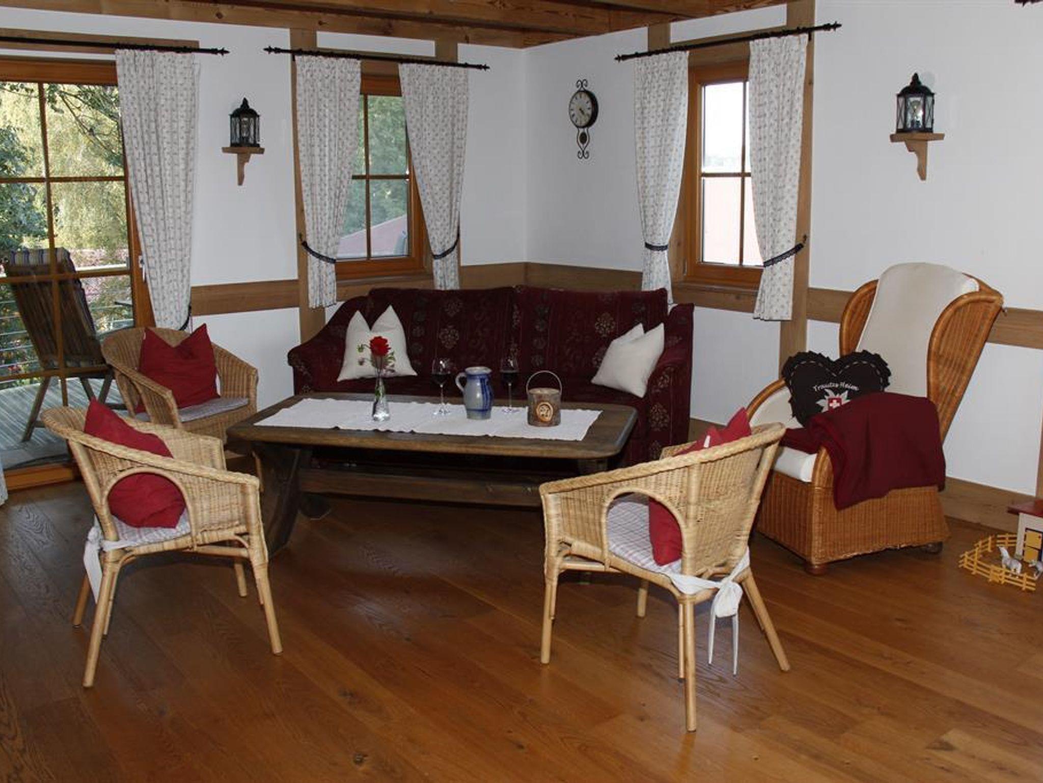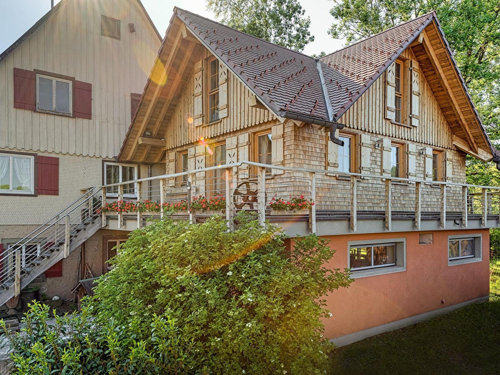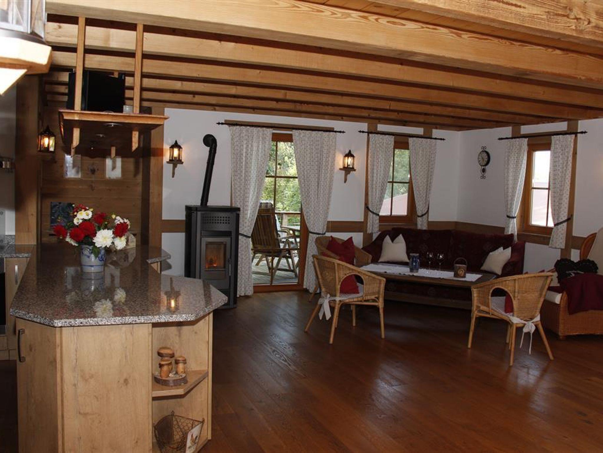Landleben live erleben und genießen im idyllisch gelegenen Teilort Frutenhof. Unvergessliche Ferien für die ganze Familie bietet unser Bauernhof mit Kühen, Kälbern, Ziegen, Hasen und Katzen zum Anfassen und Streicheln. Wunderschönes Holzhäuschen im Schwarzwälder Landhausstil mit hochwertiger Ausstattung. Offener, sehr geräumiger Küchen- Wohn- und Essbereich mit Massivholzmöbeln und -böden.