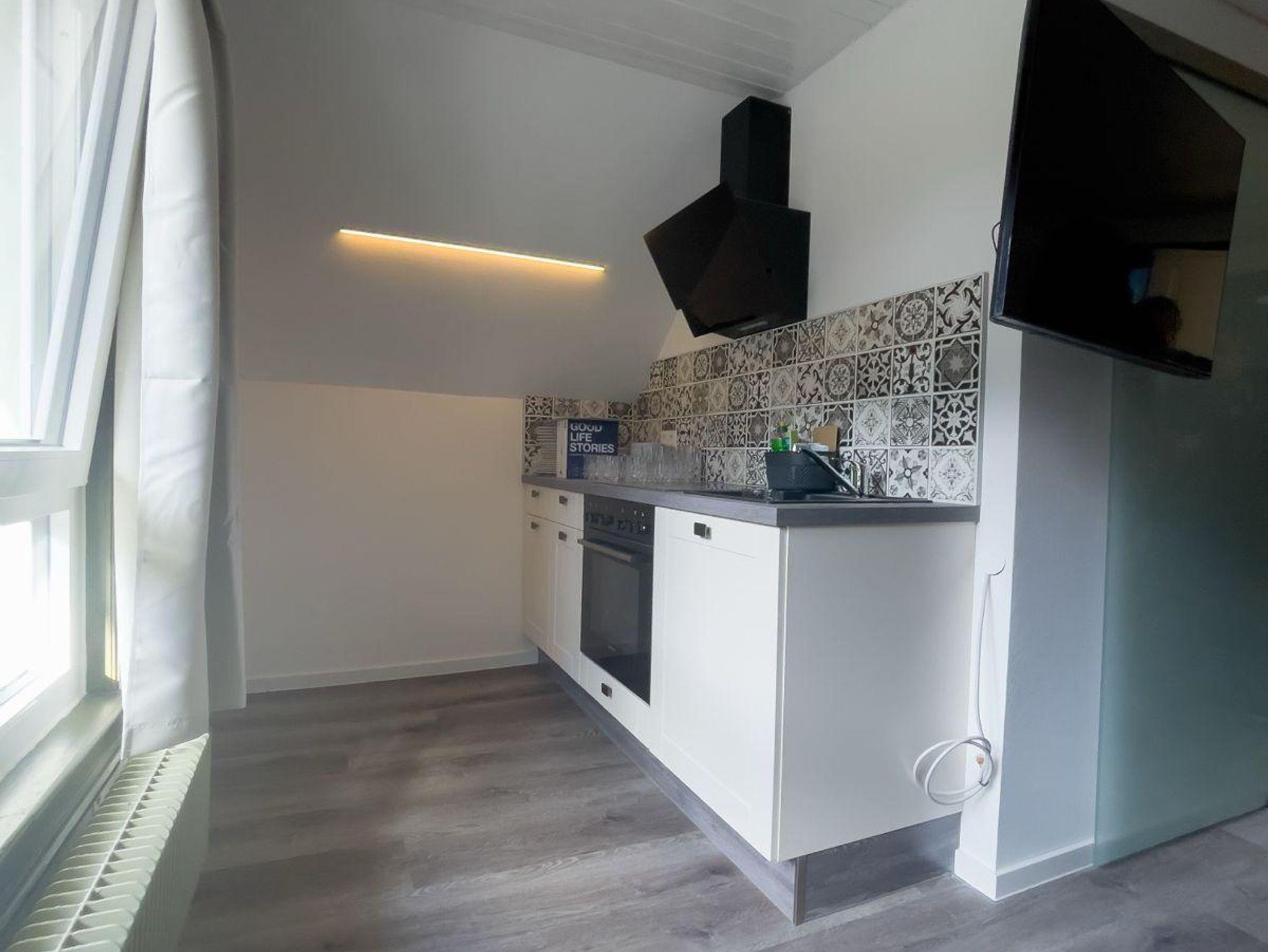 Haushalt : Geschirrspüler, E-Herd mit Cerankochfeld, Mikrowelle, Kühlschrank mit Gefrierfach, Wasserkocher, Toaster, Kaffeemaschine (Filter), Eierkocher, Rührgerät, Föhn, Kosmetikspiegel.