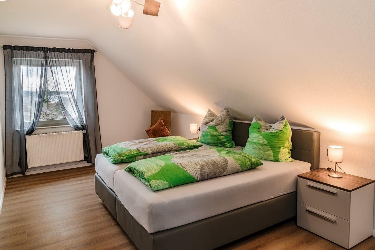 Ein Schlafzimmer ist mit einem Boxspring-Doppelbett, das andere Schlafzimmer mit zwei Boxspring-Einzelbetten ausgestattet. Vervollständigt wird die Wohnung durch das Duschbad / WC mit Fenster.