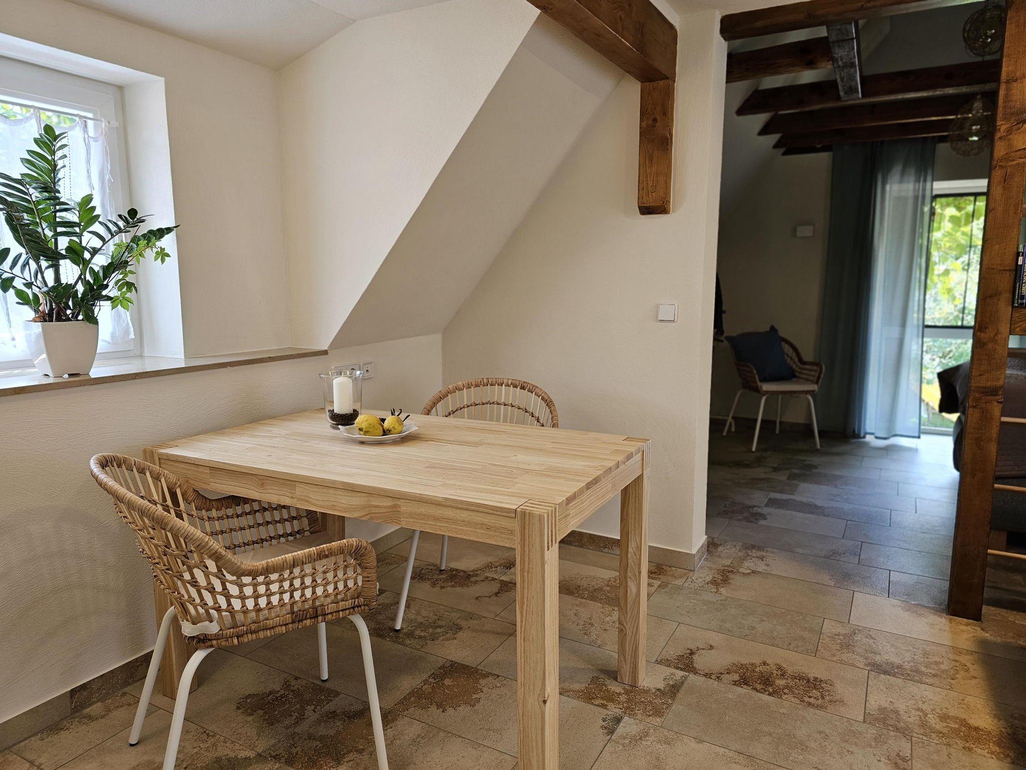 Die Zimmer wurden 2022 hochwertig saniert und mit Liebe zum Detail eingerichtet. Inbegriffen sind Sitz- und Liegemöglichkeiten im Terrassen- und Gartenbereich. Ideal für exklusive und unvergessliche Urlaubstage. Für Ihren PKW, sowie für Fahrräder, halten wir Ihnen kostenlose, abgeschlossene Parkmöglichkeiten direkt an unserer Ferienwohnung vor. Die Lage unserer Ferienwohnung lädt Sie von der ersten Minute an zum Entspannen ein. Mit direktem Blick zur Neuenburg, nur knapp 100m von der Unstrut, inmitten von herrlicher Natur und unmittelbar am Rad- und Wanderweg gelegen, können Sie Ihren Urlaub bei uns starten. Über einen separaten Eingang und eine großzügige Terrasse kommen Sie in die gemütlichen Räumlichkeiten. Im Eingangsbereich finden Sie die komplett eingerichtete Küche, mit Toaster, Kaffeemaschine, Wasserkocher, Geschirrspüler, Kühlschrank mit Gefrierfach, Herd mit Backofen vor. Im hinteren Bereich verfügt die Fewo über ein komfortables Boxspringbett und eine 3. Schlafmöglichkeit im Spitzboden, die über eine Leiter (Kinder ab 3. Lebensjahr/ bewegliche Erwachsene) zu erreichen ist. Unser Domizil ist nicht alten- und behindertengerecht. Das Badezimmer mit ebenerdiger Dusche/Raindance, Fön und WC, die moderne Küche und die Terasse mit Blick auf die Burg/ Weinberge runden das Gesamtbild ab. Bettwäsche und Handtücher sind inklusive. Bitte beachten Sie, dass Rauchverbot besteht und keine Haustiere erlaubt sind. Das WLAN/TV können Sie kostenfrei nutzen. In Absprache ist auch ein 24-Stunden-Checkin kurzfristig möglich. Genießen Sie einen erholsamen Urlaub in einem besonders schönen Ambiente.
