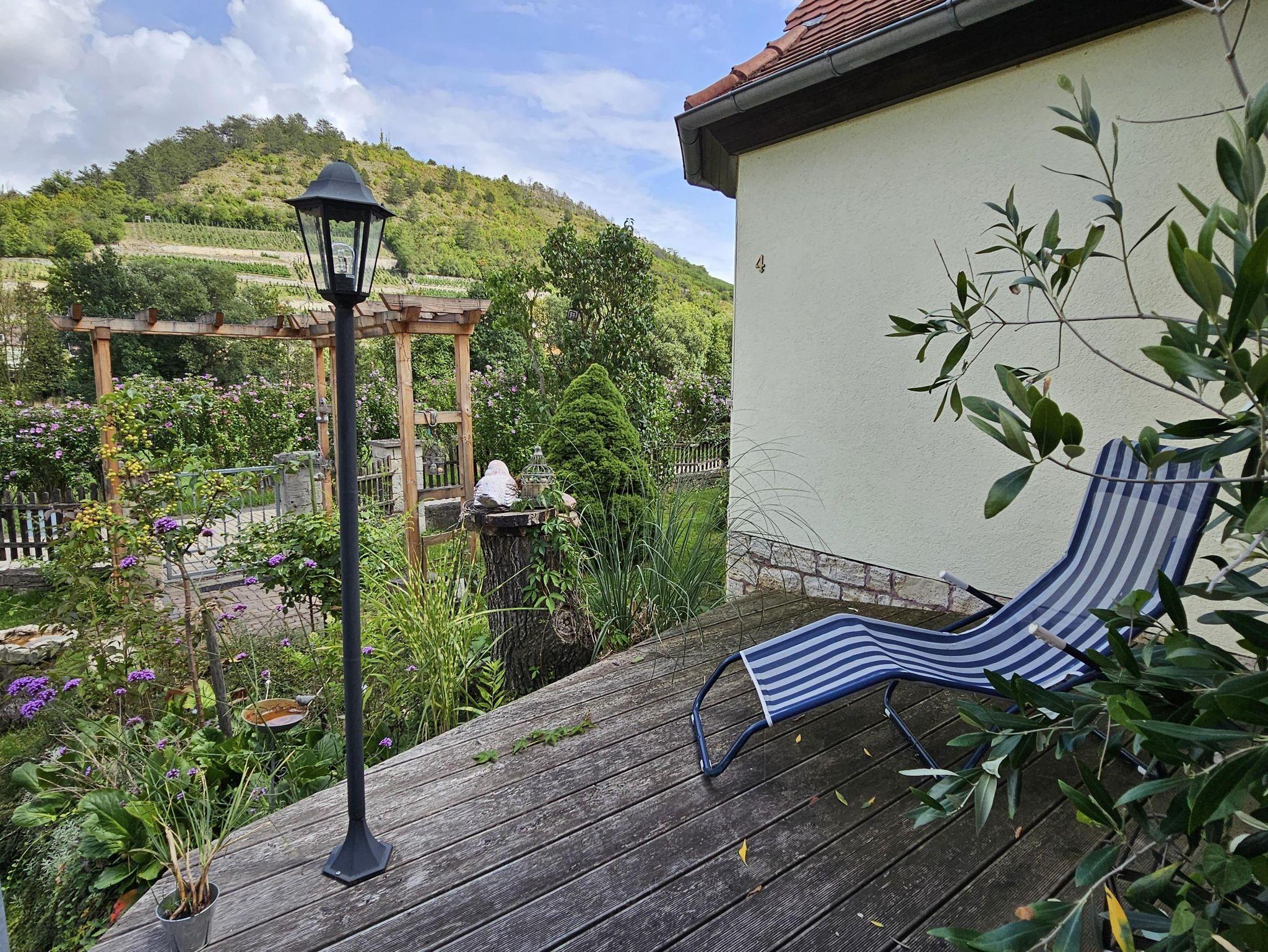 Eine der schönsten Ferienwohnungen, direkt am Rad- und Wanderweg in der Urlaubsregion Saale-Unstrut mit einem mondänen Blick auf die Weinberge und die Neuenburg. Unser Haus liegt idyllisch im Grünen und trotzdem zentrumnah, nur 5 Minuten zu Fuß zur nächsten Einkaufsmöglichkeit und nur wenige Meter vom Bahnhof der Unstrutbahn, entfernt. Freyburg lädt Sie mit vielen Freizeitaktivitäten, wie zum Beispiel einen Besuch auf der Neuenburg, in der Rotkäppchen Sektkellerei, in der Winzervereinigung, im Turnvater-Jahn-Museum, im Freibad in den Weinbergen und in vielen verschiedenen Cafes und Resaurants. Nur wenige Kilometer entfernt befindet sich die Kreisstadt Naumburg mit weiteren Sehenswürdigkeiten, wie den Naumburger Dom, die Wenzelskirche mit der berühmten Hildebrandtorgel oder das Nietzsche Dokumentationszentrum. Aber auch der Geiseltalsee, der in schon 15 min zu erreichen ist, hält Spaß und Erholung beim Baden und Wassersport für Sie bereit.