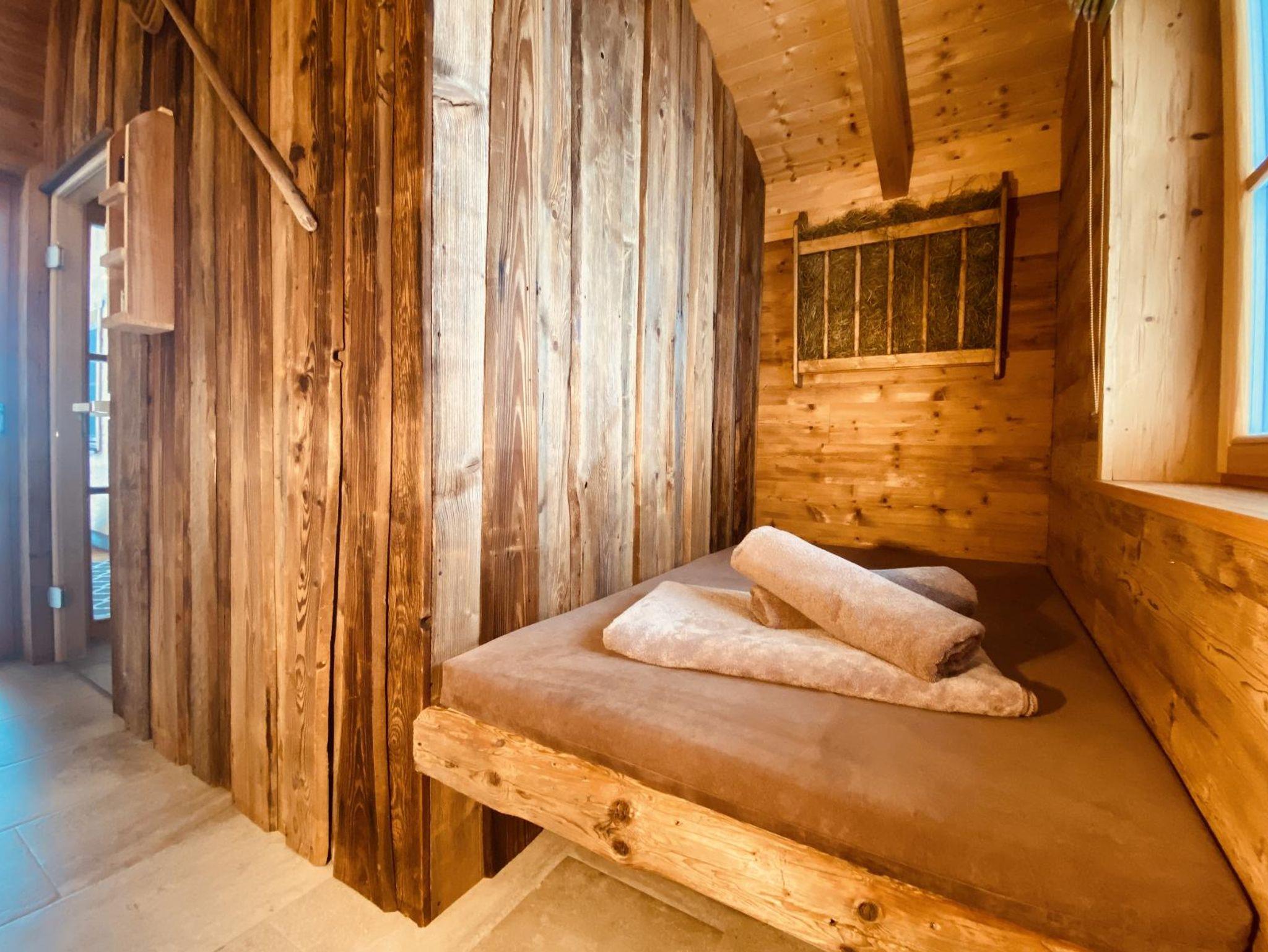 Die Berg-Chalets bieten Platz für bis zu 5 Personen. Auf einer Wohnfläche von 110 m² erwarten Sie unter anderem ein Badezimmer mit Regendusche und Holz-Badewanne, eine Alm-Sauna und ein Außen-Whirlpool..
