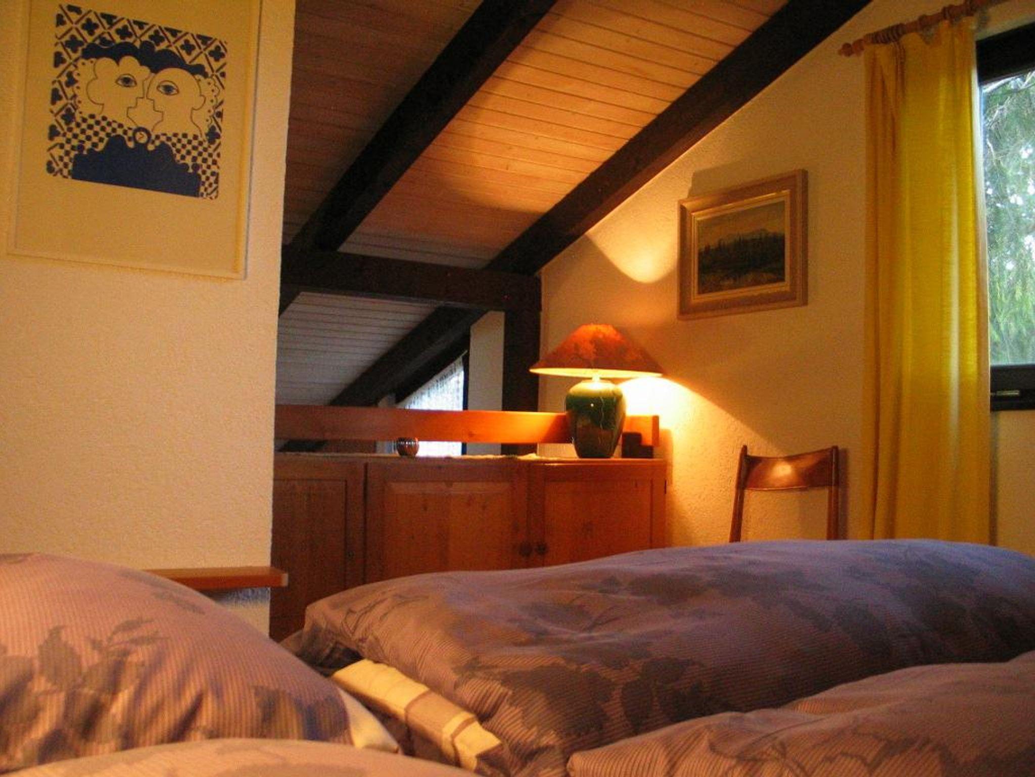 Schlafebene Eltern: Doppelbett 1,6 m x 2m, Federbetten mit Baumwollbezügen. Wäschevitrine