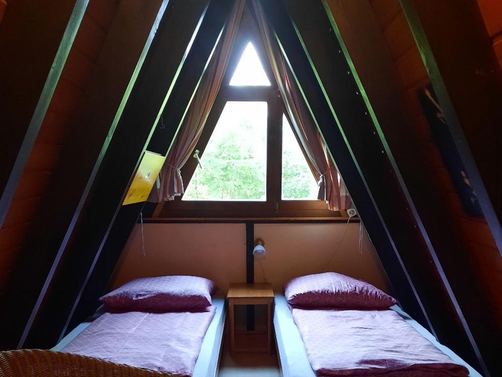 Gemütliches Nurdachhaus (ca. 55 qm²) für bis zu 5 Personen mit 2 Schlafzimmer (Einzelbetten), komplett eingerichtete Küche mit Backofen und Mikrowelle.