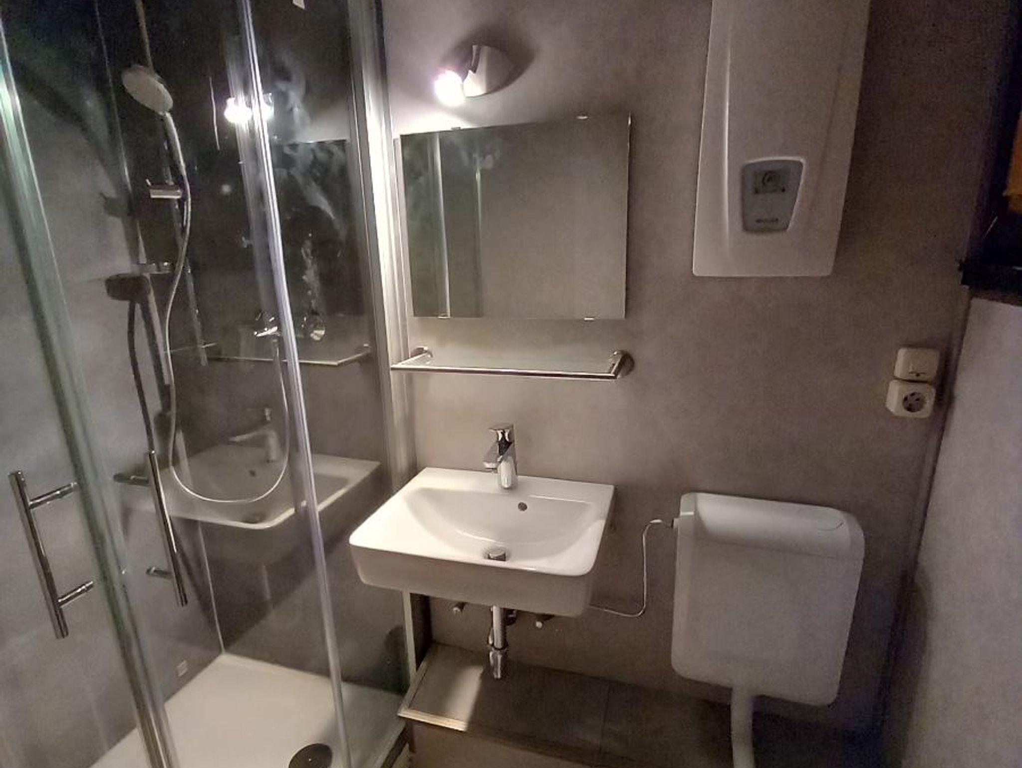 Außerdem hat das Haus ein rustikales Wohnzimmer mit SAT-TV sowie ein Badezimmer mit Dusche, WC und Waschbecken zu bieten.