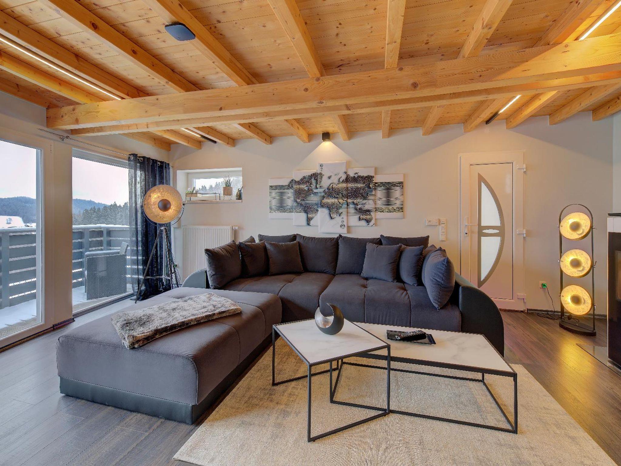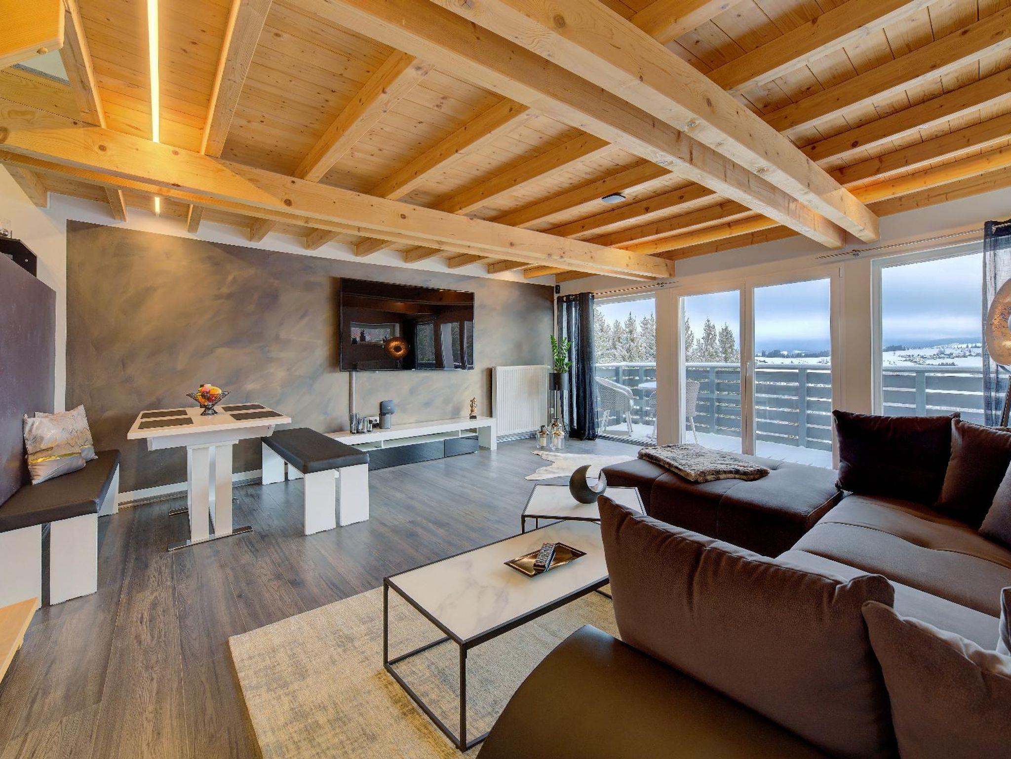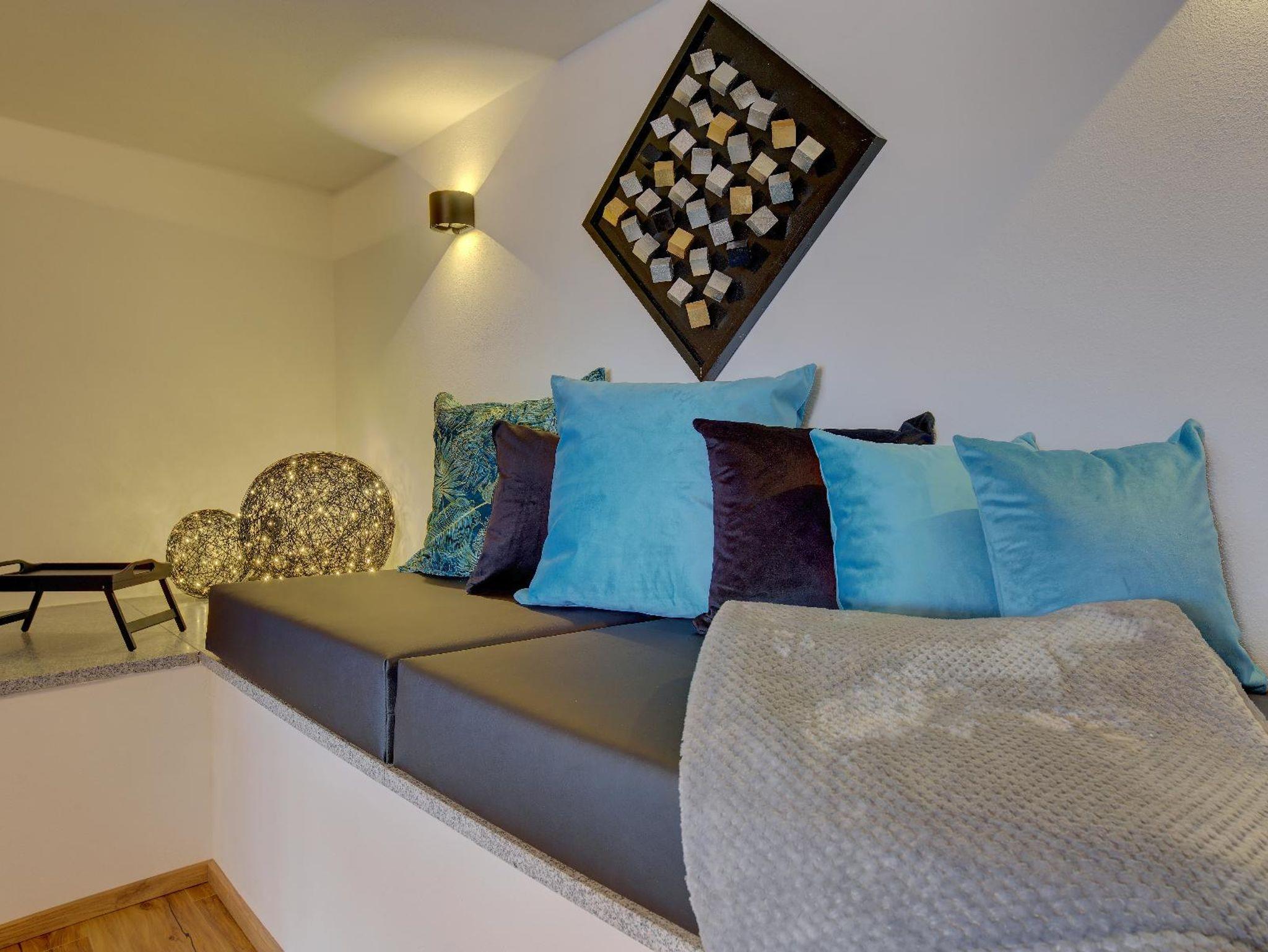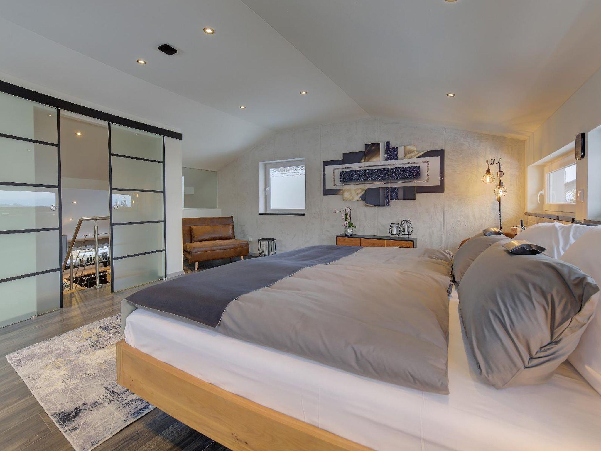 Im Schlafzimmer, Wohnzimmer und Ihrem privaten Wellnessbereich steht Ihnen jeweils ein großer Fernseher zur Verfügung.
