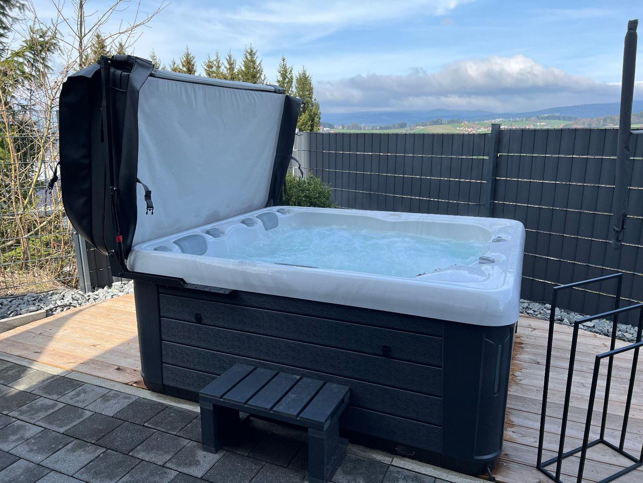 Der gemütlich gestaltete Wellnessbereich lädt Sie zum Relaxen in Ihrer privaten Kombisauna (Infrarot und/oder Ofen) ein. Ein durchgehende beheizter privater Whirlpool befindet sich auf Ihrer hauseigenen Terrasse direkt vom Wellnessraum zugänglich.