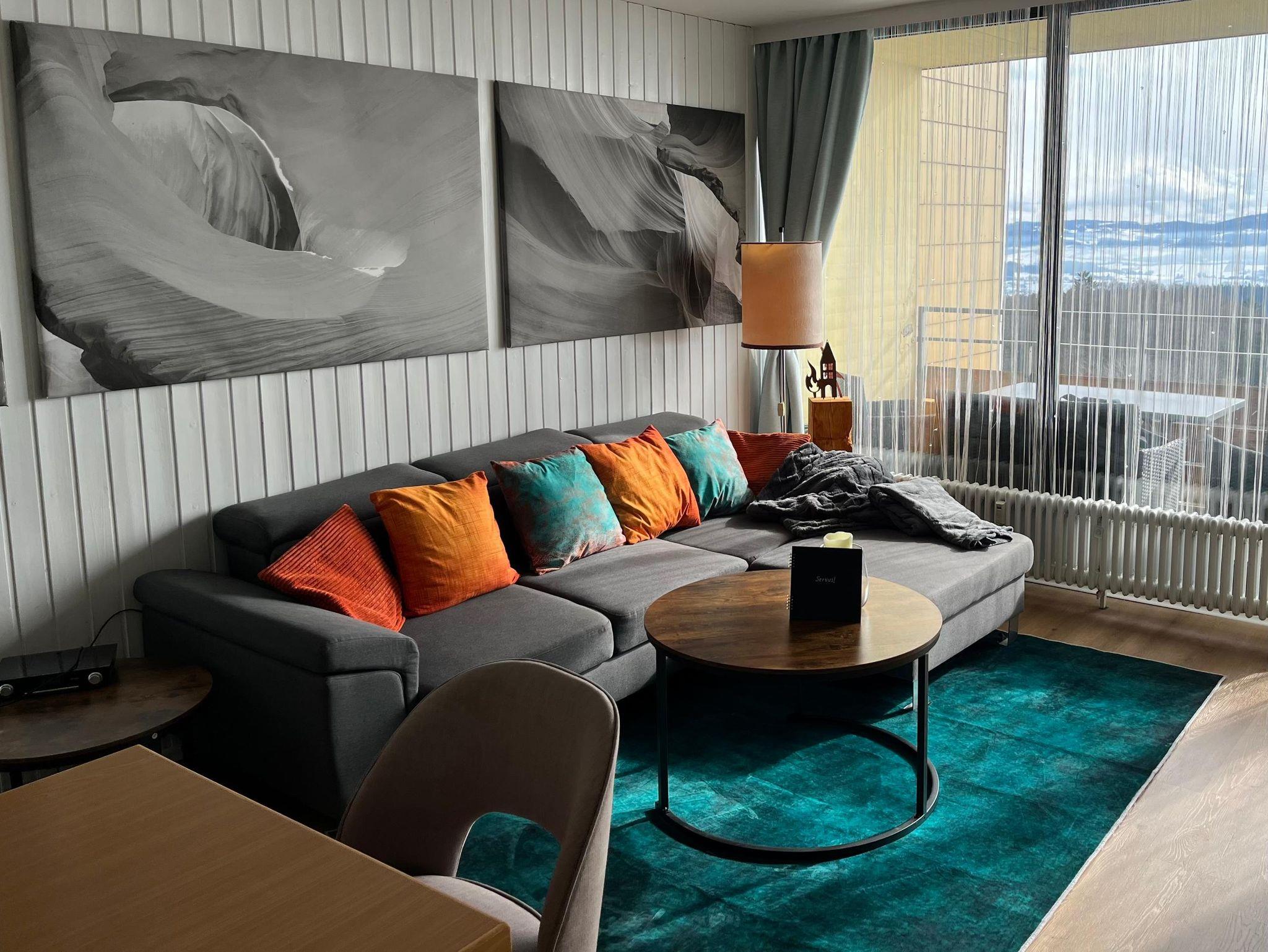 Zum Entspannen und Verweilen lädt das gemütliche Wohnzimmer mit bequemer Schlaf- Couch, Kabel-TV, Radio, WLAN und viel Platz für gemeinsame Zeit ein.