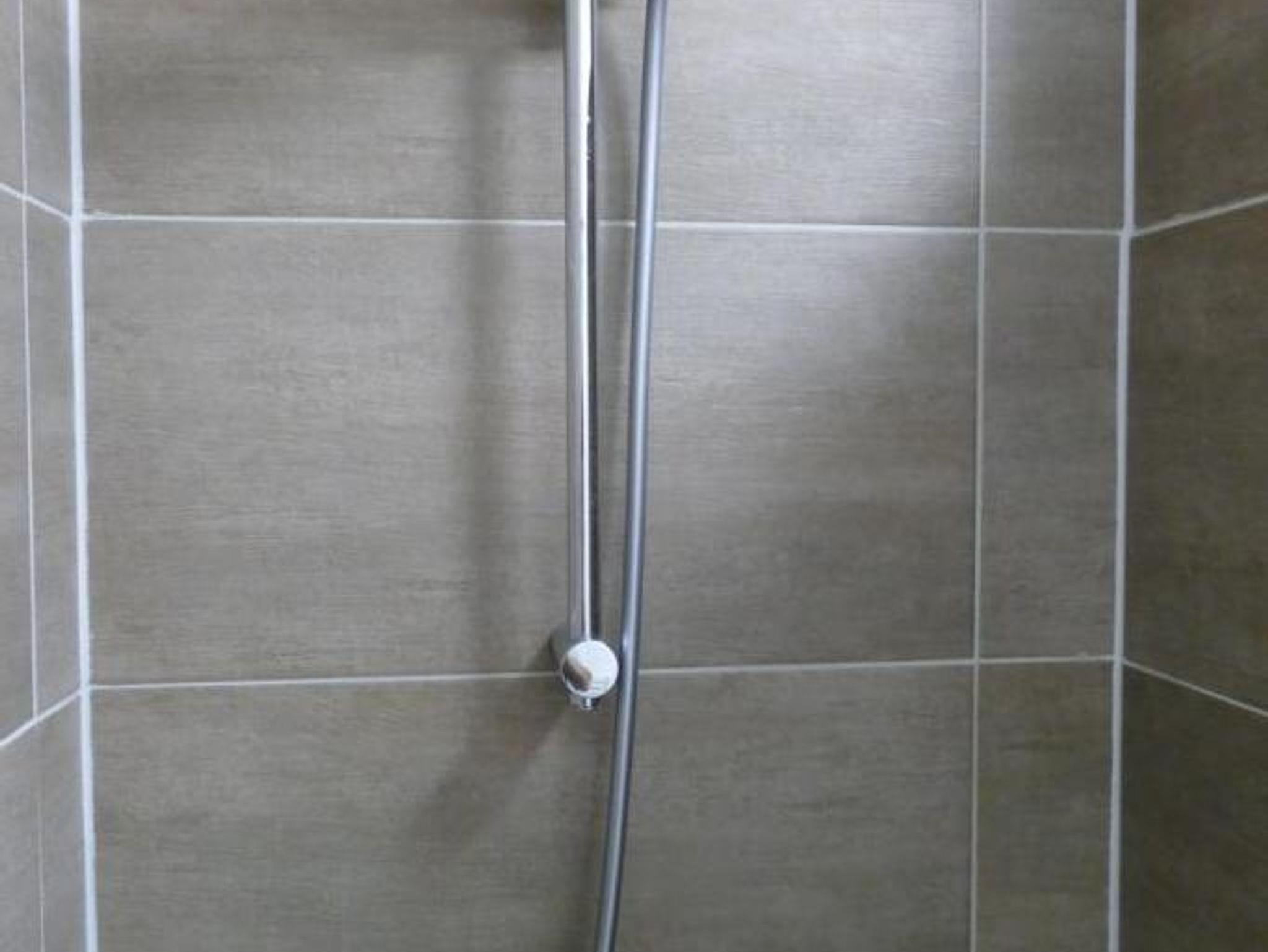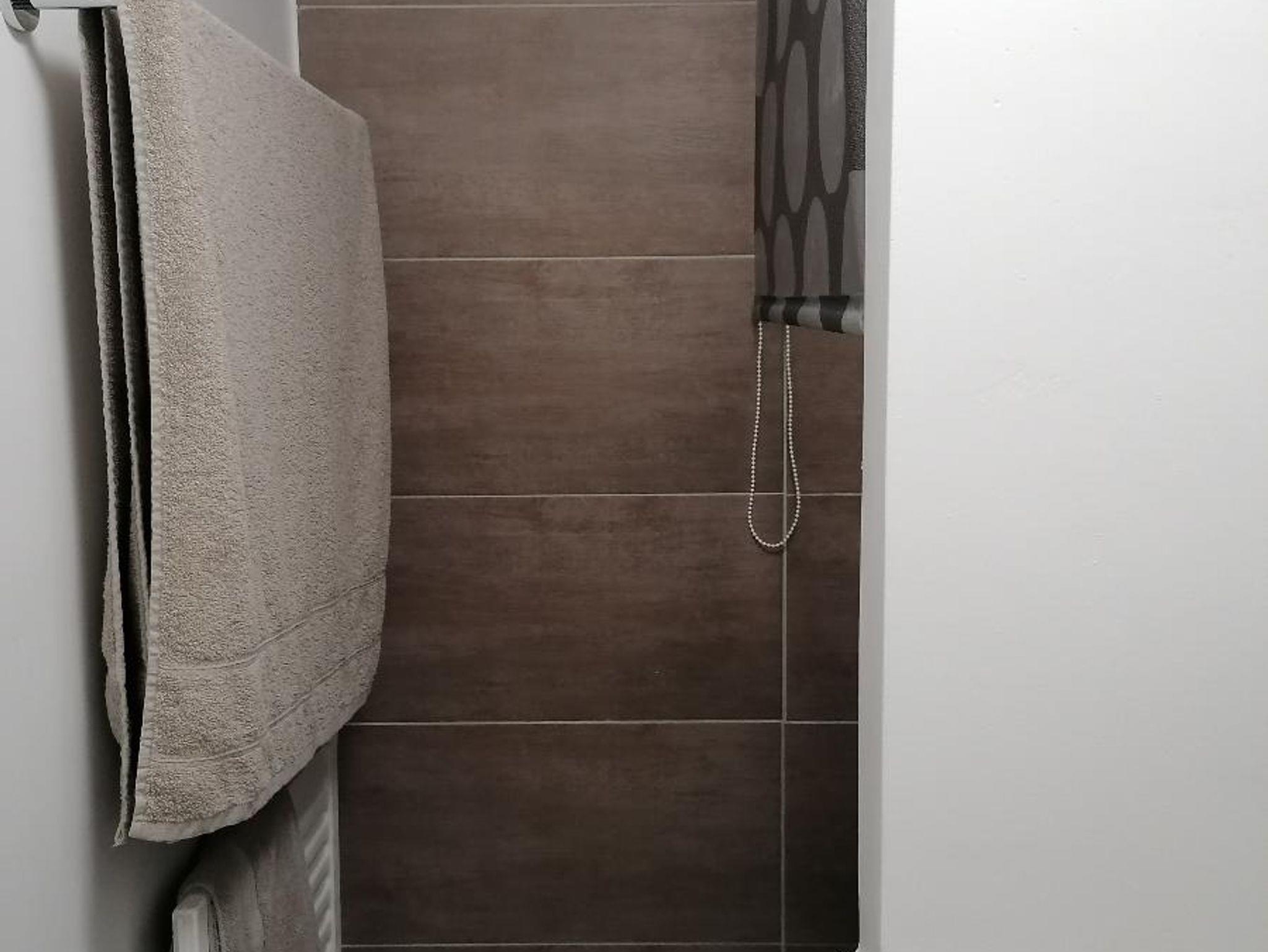 Das moderne Badezimmer verfügt über Dusche/WC, Föhn, Spiegel.