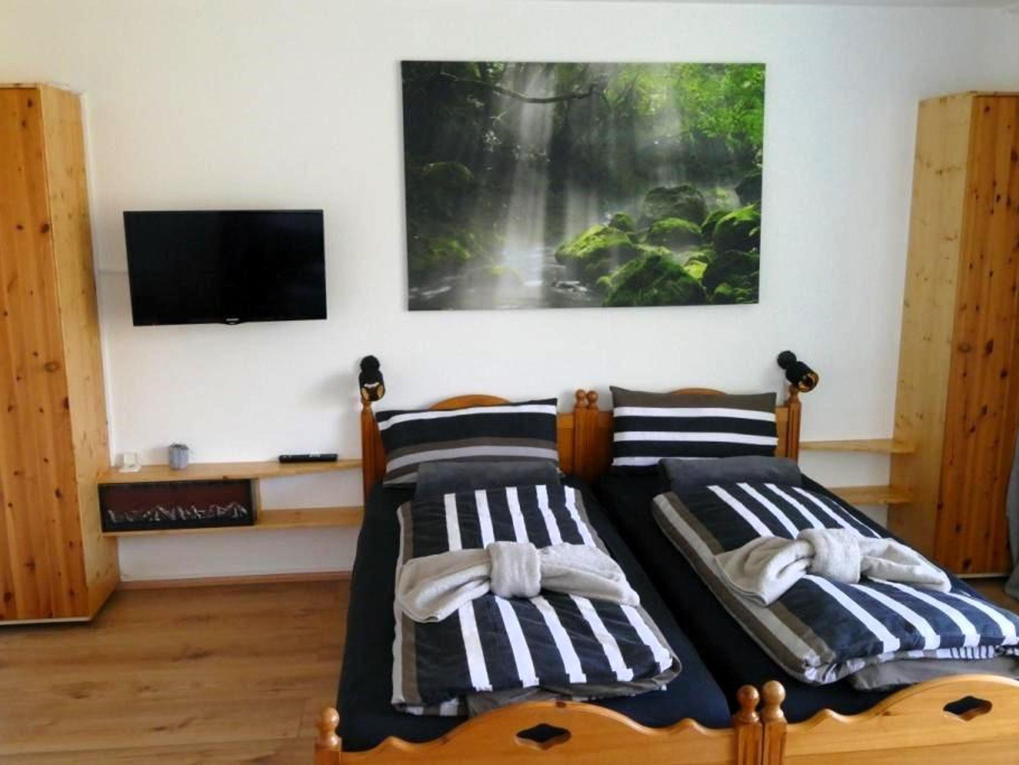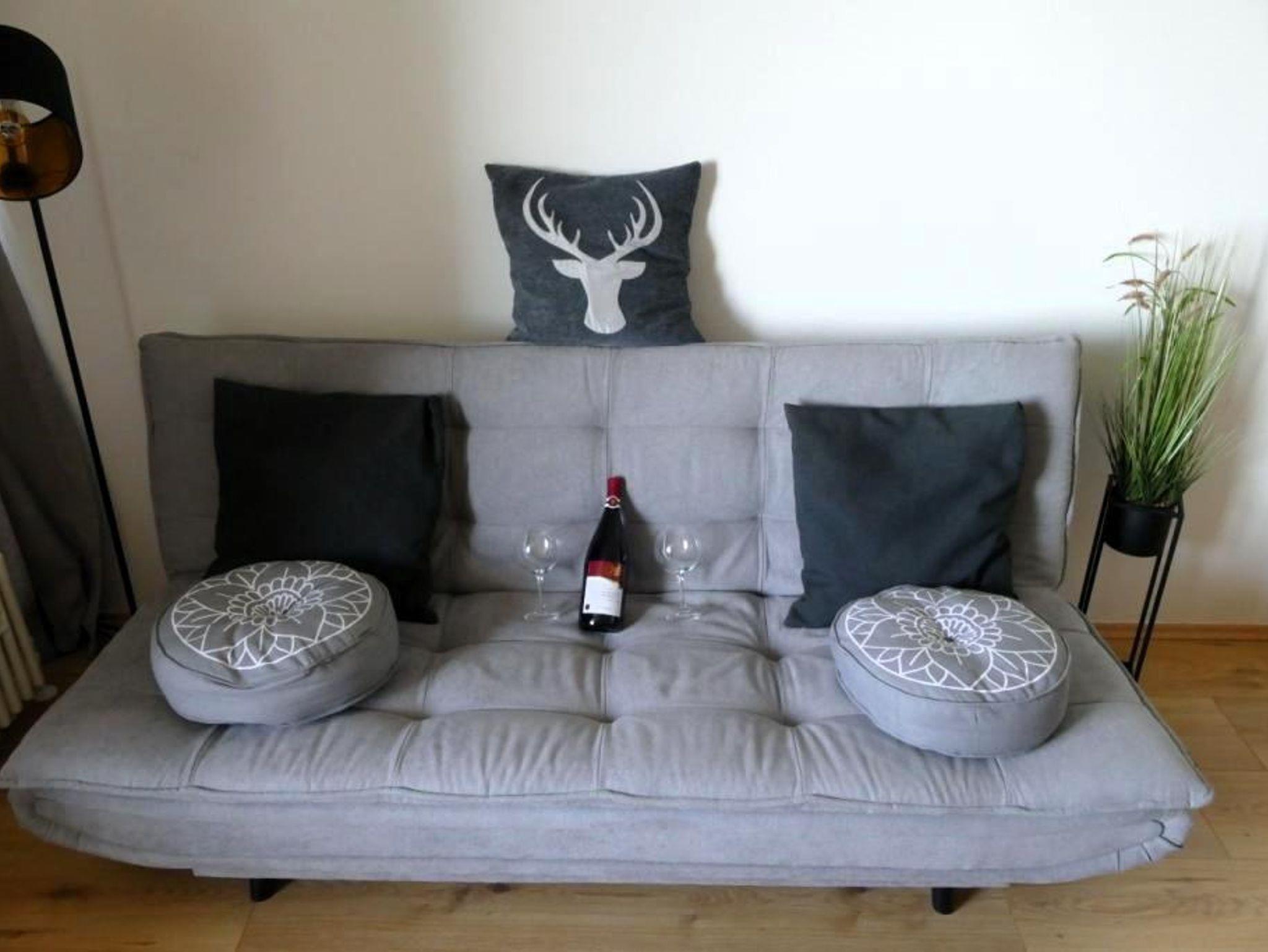 Die Ferienwohnung ist liebevoll und gemütlich eingerichtet und bietet neben einem Doppelbett und einer Schlafcouch (ausgeklappt 1,95 x 1,20 m), Kabel-TV, kostenlos WLAN und eine gemütliche Essecke.