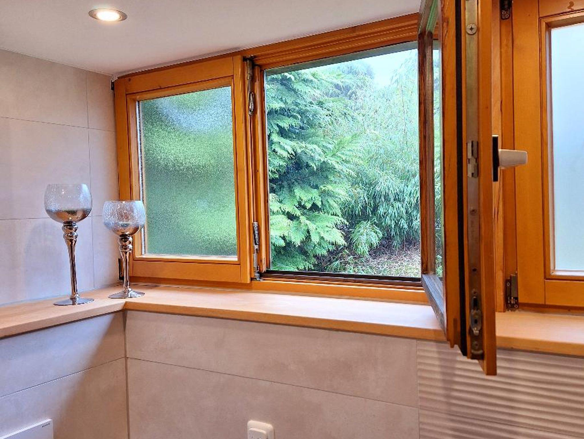 Genießen Sie entspannte Stunden auf der Terrasse mit Gartenmöbeln, Sonnenschirm und Grill. Die moderne, voll ausgestattete Küche (Herd, Backofen, Kühlschrank, Toaster, Wasserkocher, Kaffeemaschine) lädt zum Kochen ein. Ein gemütlicher Wohn- und Essbereich mit Sitzgruppe, Schlafcouch und Flachbild-TV sorgt für Wohlfühlatmosphäre.