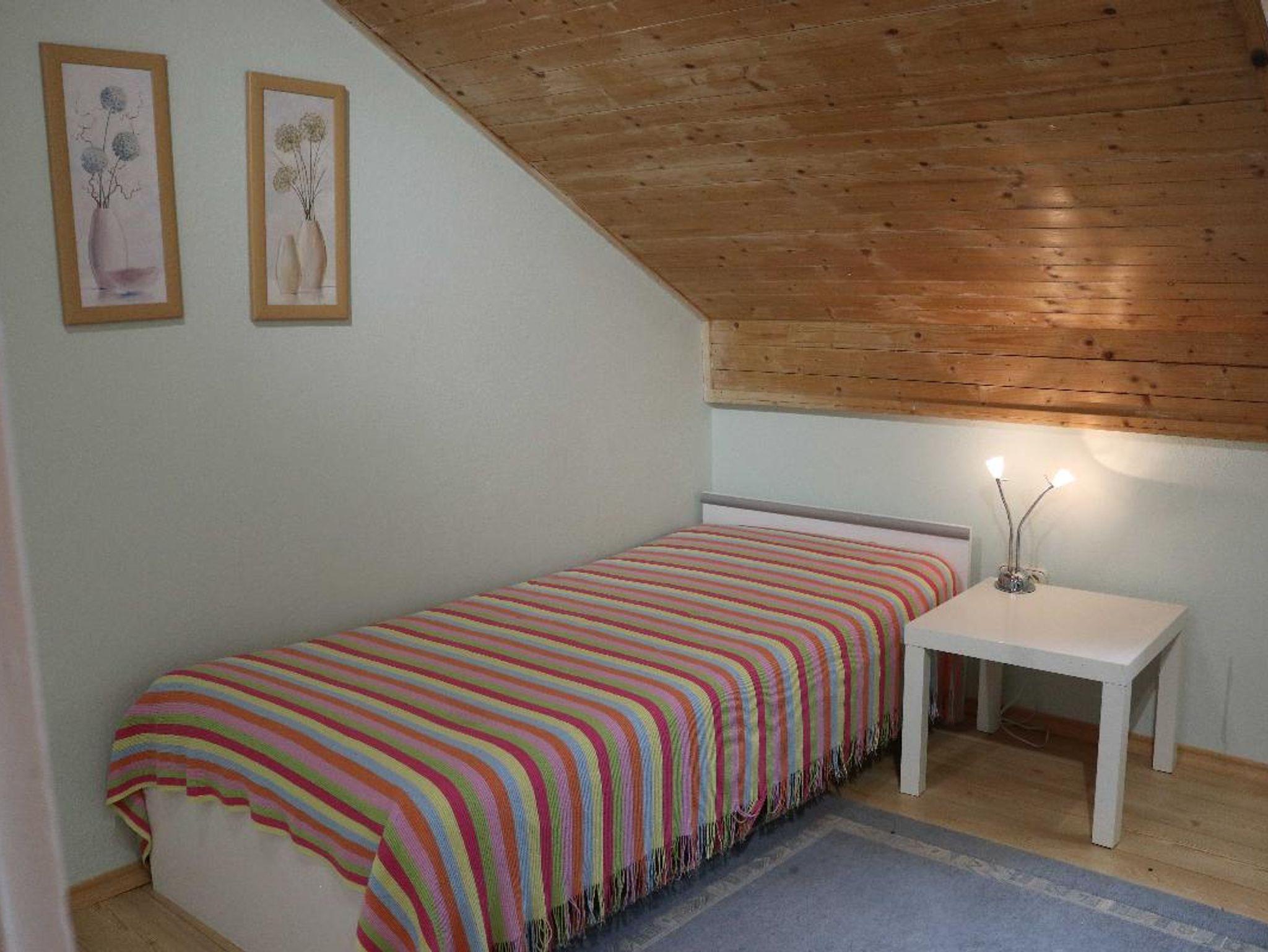 Die Wohnung im Dachgeschoss hat ca. 100qm. Sie sehen auf den Fotos 4 Schlafbereiche. Davon ein Zimmer mit einem Bett 140*200. Im hinteren Bereich direkt unter dem Dachgiebel ein Einzelbett mit 140*200 und zwei weitere Betten einzeln mit 90*200cm. Die Wohnung bietet 2 Fernseher und