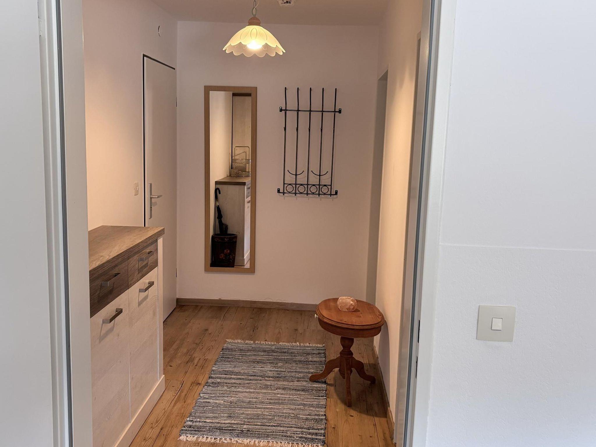 Die Ferienwohnung befindet sich im 2. Obergeschoss des Hauses und bietet alles, was Sie für einen komfortablen Aufenthalt benötigen. Ein helles Wohn- und Esszimmer mit TV lädt zum Entspannen ein; hier befindet sich zudem ein praktisches Schrankbett als zweites Doppelbett. Die voll ausgestattete Küche bietet alle Annehmlichkeiten für die Selbstverpflegung. Das separate Schlafzimmer ist mit einem gemütlichen Doppelbett eingerichtet, und das moderne Bad verfügt über Dusche und WC. Auf dem Balkon genießen Sie einen wunderschönen Panoramablick über die Berge. Dank des Lifts erreichen Sie die Wohnung jederzeit bequem. Hallenbad und Sauna befinden sich im Haus und stehen den Hausgästen kostenfrei zur Verfügung – ideal für entspannte Stunden nach einem aktiven Tag.