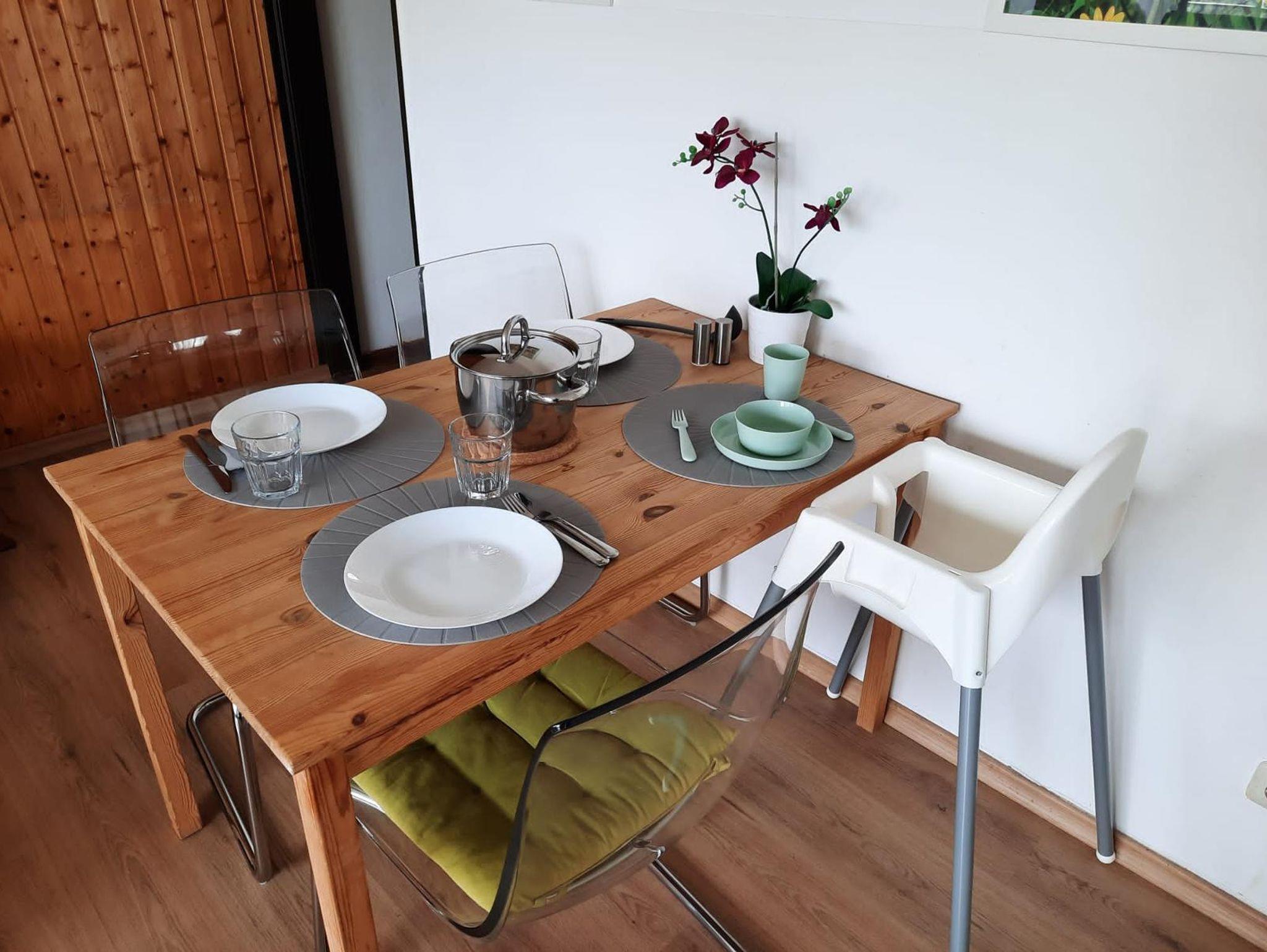 Rausfallschutz für Säuglinge und Kleinkinder auf Anfrage möglich. Hochstuhl auf Anfrage möglich. Zustellbett (Schlafsofa) auf Anfrage möglich.