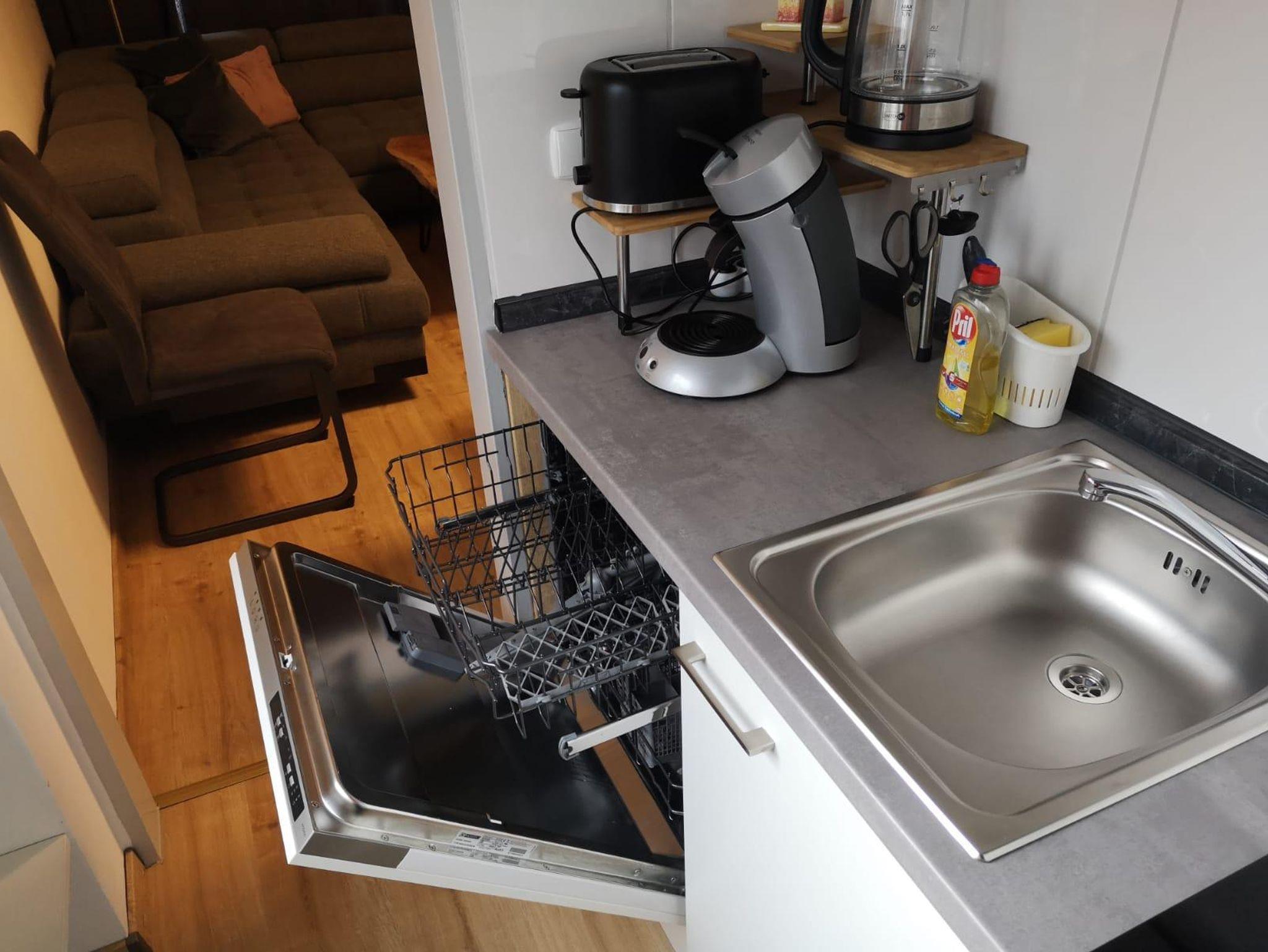 Das Appartement besteht aus einem in Richtung Süd ausgerichteten überdachten Balkon mit einem Wohn-Schlafzimmer mit Schrankbett (Größe 1,60 * 2,00 m), einer voll ausgestatteten Küchenzeile mit Geschirrspüler, 2 Ceran-Kochfelder, Backofen, Kühlschrank mit integriertem Kühlfach, Wasserkocher, Toaster, Pad-Kaffeemaschine sowie 1 Bad mit Dusche und WC. Handtücher und Bettwäsche werden im Appartement gestellt.