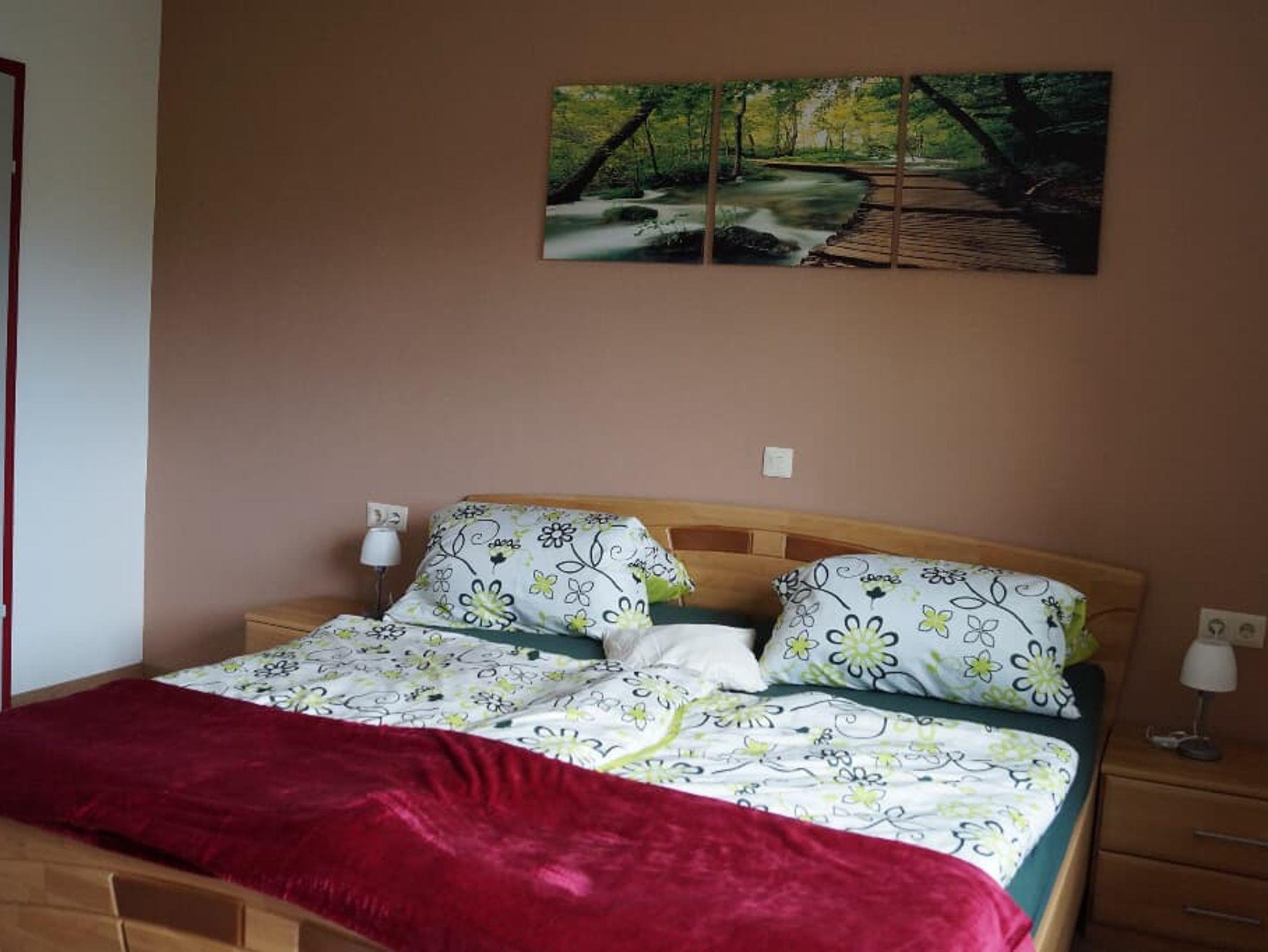 Wir sind mit unseren 6 ruhig gelegenen Zimmern gern für Sie da. Unsere Zimmer haben Sat-TV, Duschbad und WC sowie freies WLAN für unsere Gäste. Am Morgen steht für Sie ein Frühstücksbuffet bereit. Nach Absprache auch für Vegetarier. In unserem gemütlichem Frühstücksraum können Sie auch am Abend in geselliger Runde ein Glas Wein oder ein Bier trinken. Für Gäste, die gern lesen, befindet sich im Haus eine umfangreiche Bibliothek, die von allen genutzt werden kann. Seit Herbst 2017 können die Gäste in der hauseigenen Gartensauna zur Ruhe kommen.
