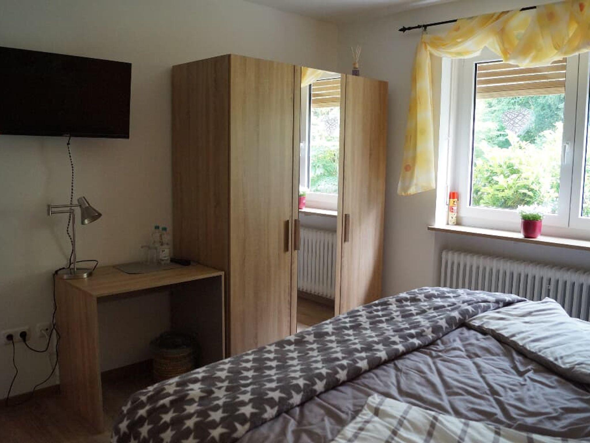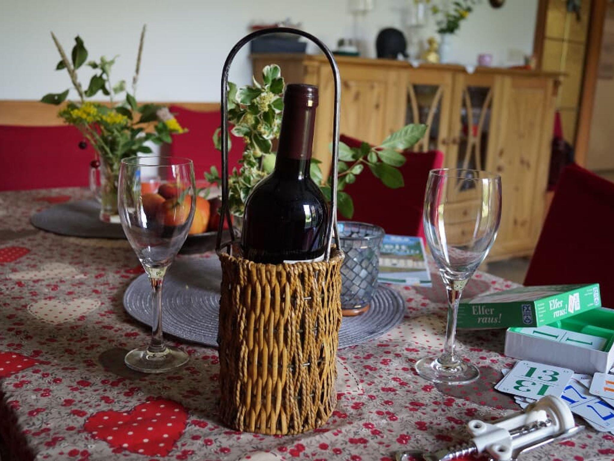 Wir sind mit unseren 6 ruhig gelegenen Zimmern gern für Sie da. Unsere Zimmer haben Sat-TV, Duschbad und WC sowie freies WLAN für unsere Gäste. Am Morgen steht für Sie ein Frühstücksbuffet bereit. Nach Absprache auch für Vegetarier. In unserem gemütlichem Frühstücksraum können Sie auch am Abend in geselliger Runde ein Glas Wein oder ein Bier trinken. Für Gäste, die gern lesen, befindet sich im Haus eine umfangreiche Bibliothek, die von allen genutzt werden kann. Seit Herbst 2017 können die Gäste in der hauseigenen Gartensauna zur Ruhe kommen.