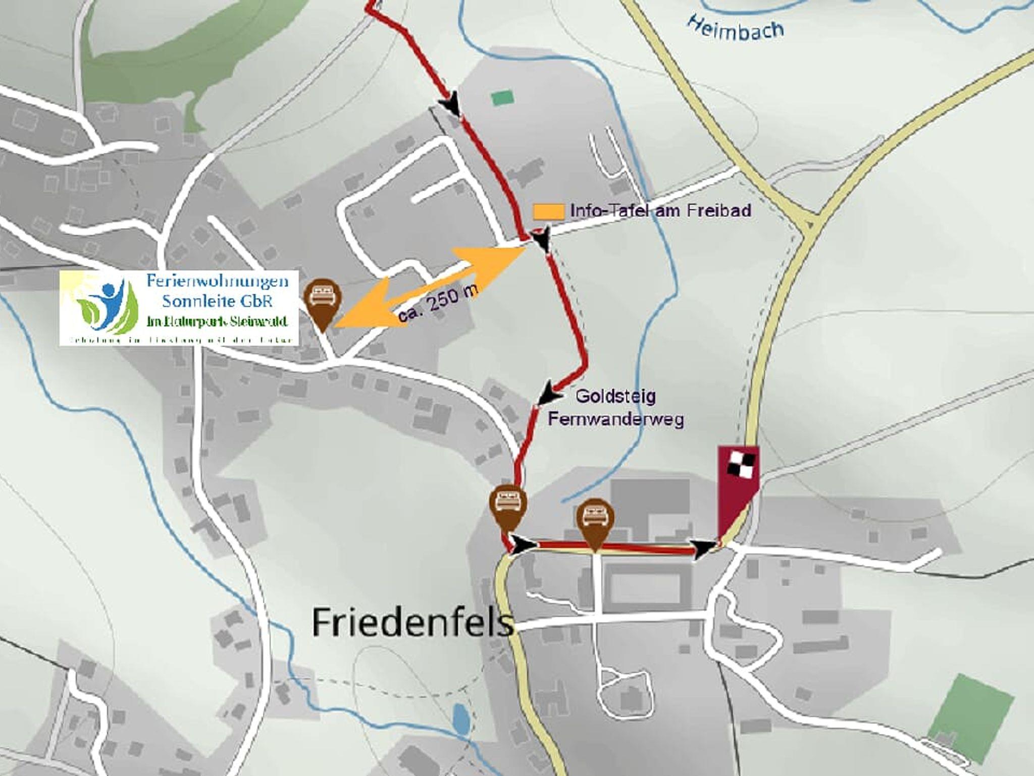 In ruhiger jedoch zentraler Lage am Südhang des Steinwaldes. Vermietung nur an Urlaubs- und Feriengäste, keine Arbeiter oder Gewerbetreibende.