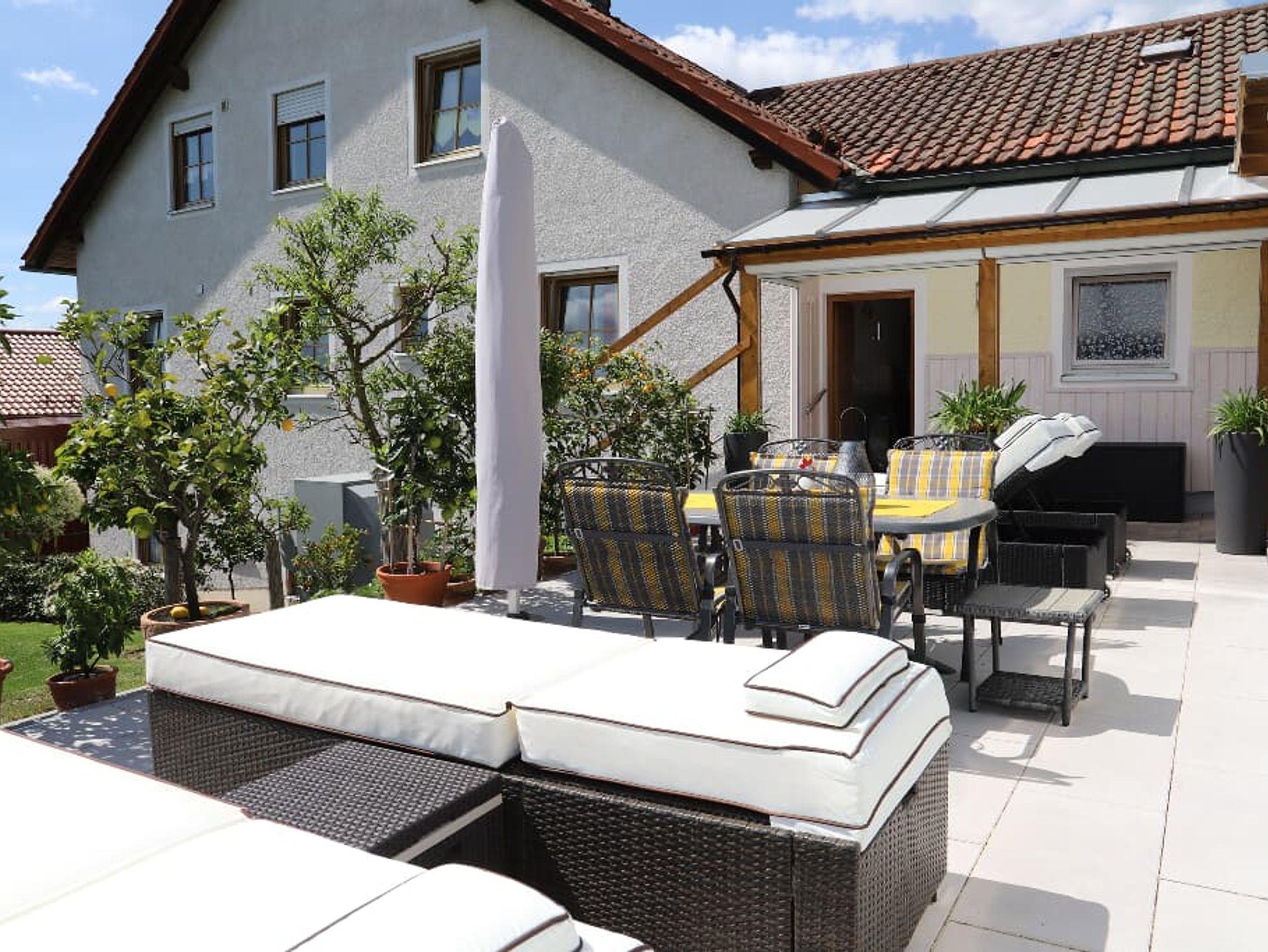 Das Einzimmer-Apartment für 2 Personen im Obergeschoß, kann auch zur Erweiterung der FeWo`s genutzt werden. Nehmen Sie hierzu Kontakt mit uns auf (XXXXXX oder Mail an ). In unserem gepflegten Garten finden Sie Erholung und Entspannung. Pergola und Terrasse mit Grill. Keine Haustiere.