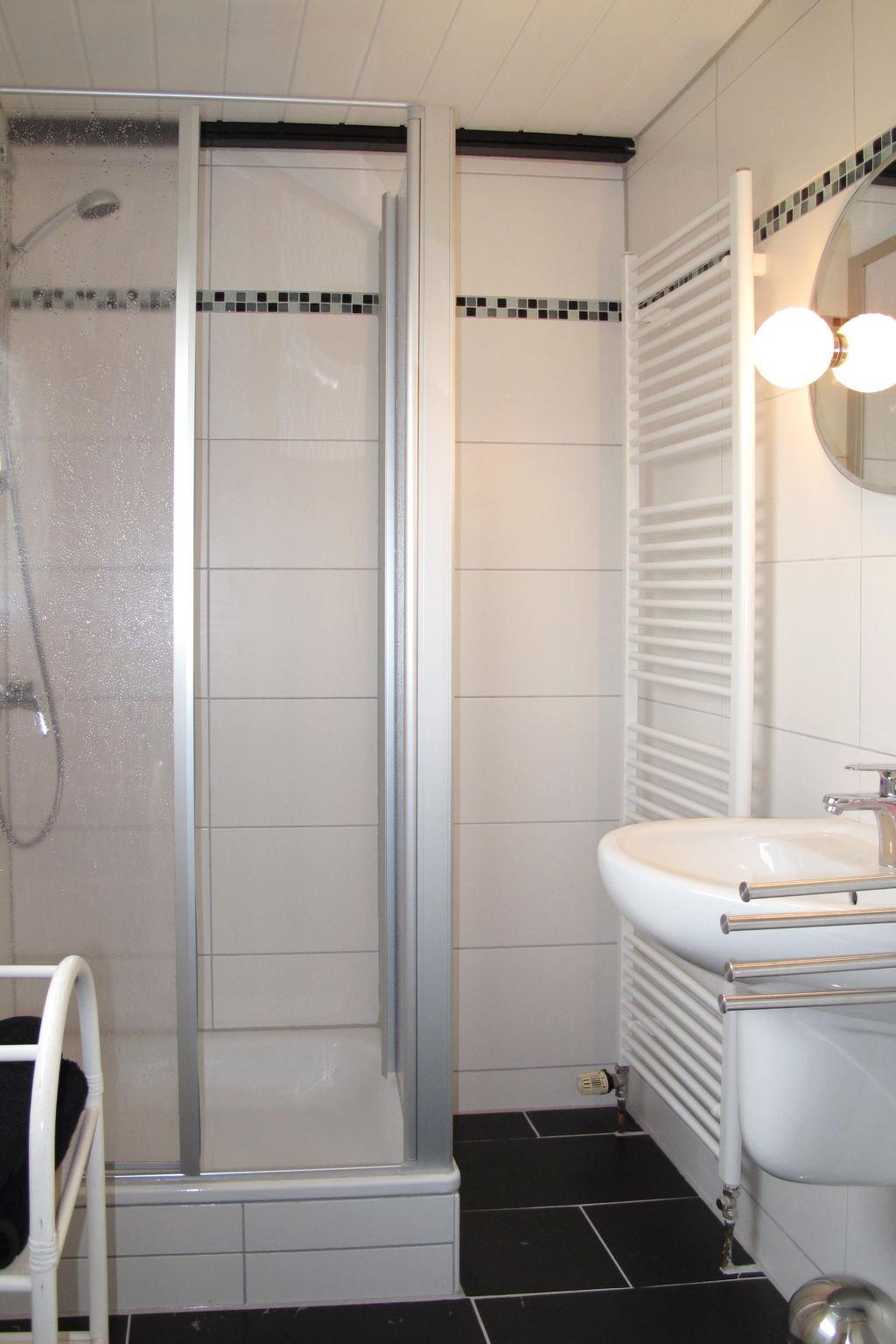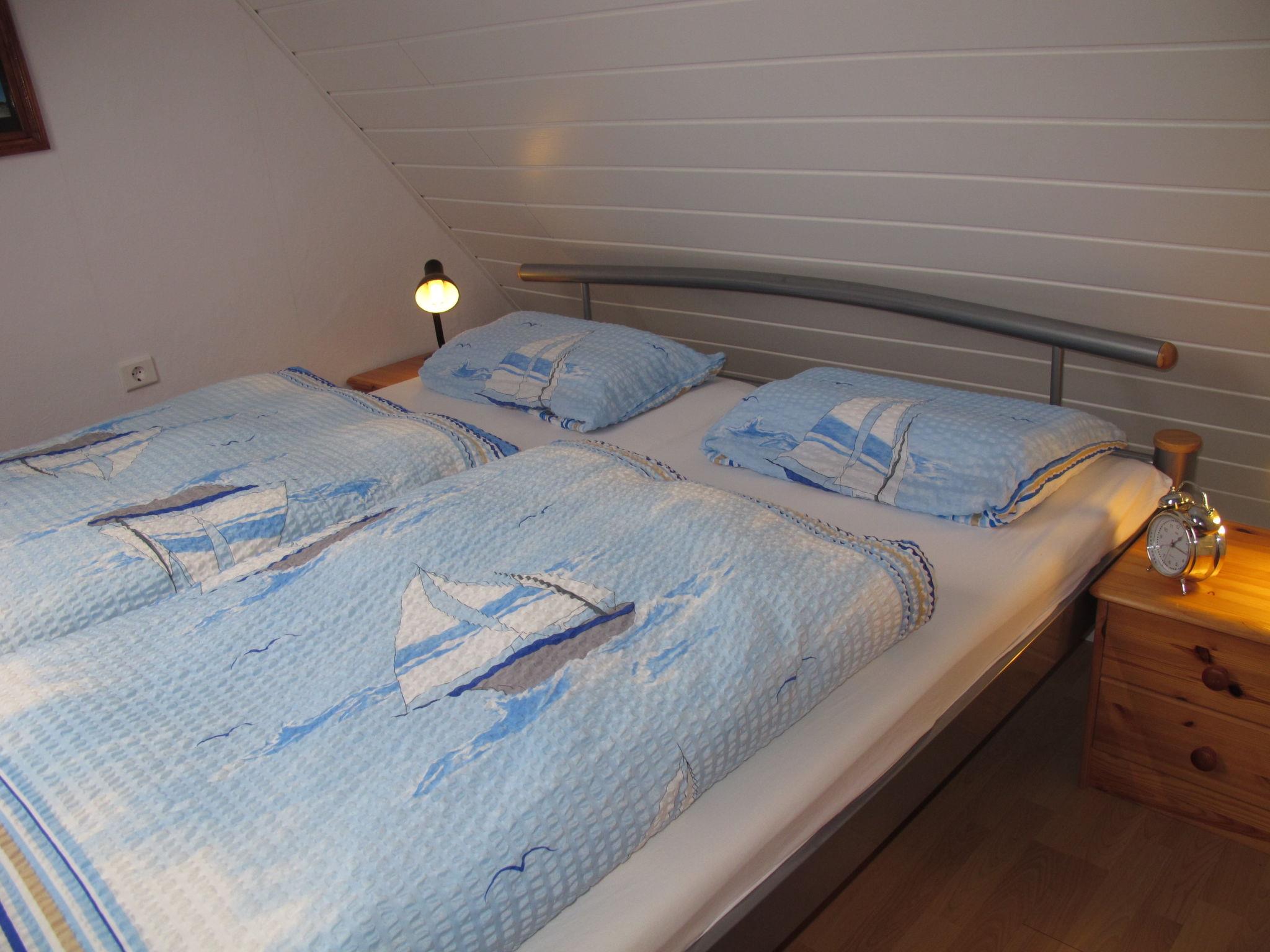 3-room house 55 m2 on 2 levels. Cosy furnishings: living room with satellite TV, radio and DVD. Kitchen (dishwasher, 4 induction hot plates, toaster, kettle, microwave, electric coffee machine) with dining table. Exit to the garden. Shower/WC. Upper floor: 1 room with sloping ceilings with 1 double bed. 1 room with sloping ceilings with 2 beds. Terrace furniture, barbecue, deck chairs (2). Facilities: iron, children's high chair, baby cot. Internet (WiFi, free). Please note: non-smokers only. Smoke alarm.