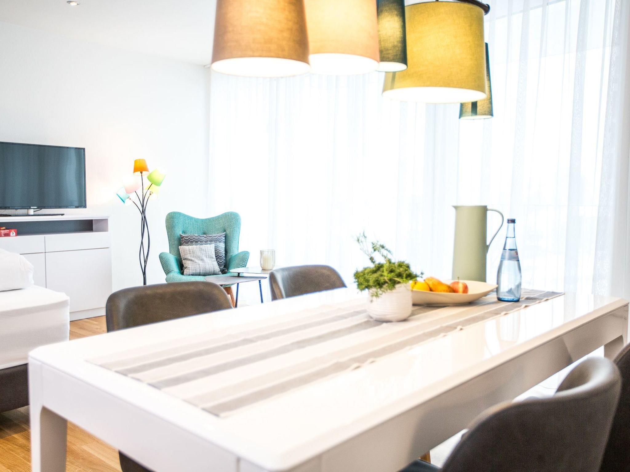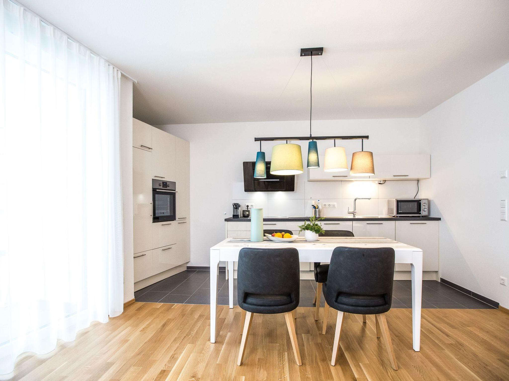 The holiday flat is located on the outskirts of Friedrichshafen in the Fischbach district, just 600 metres from Lake Constance. The holiday flat is located within the residential development "Neue Ortsmitte". In the immediate vicinity you will find an EDEKA grocery shop, train and bus stop and the lake and outdoor pool are only 600 metres away.