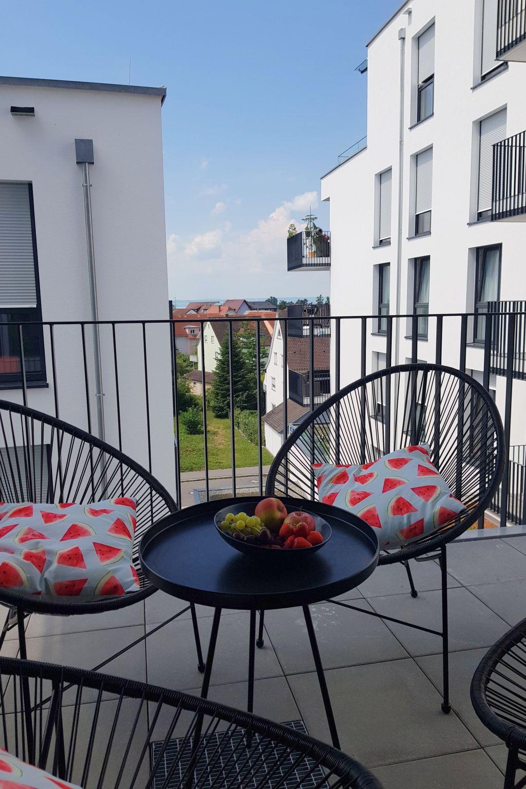 Comfortable flat This very spacious holiday flat is located on the outskirts of Friedrichshafen in the Fischbach district, just 600 metres from Lake Constance. The holiday flat is located within the residential development "Neue Ortsmitte". In the immediate vicinity you will find an EDEKA grocery shop, train and bus stop and the lake and outdoor pool are only 600 metres away.