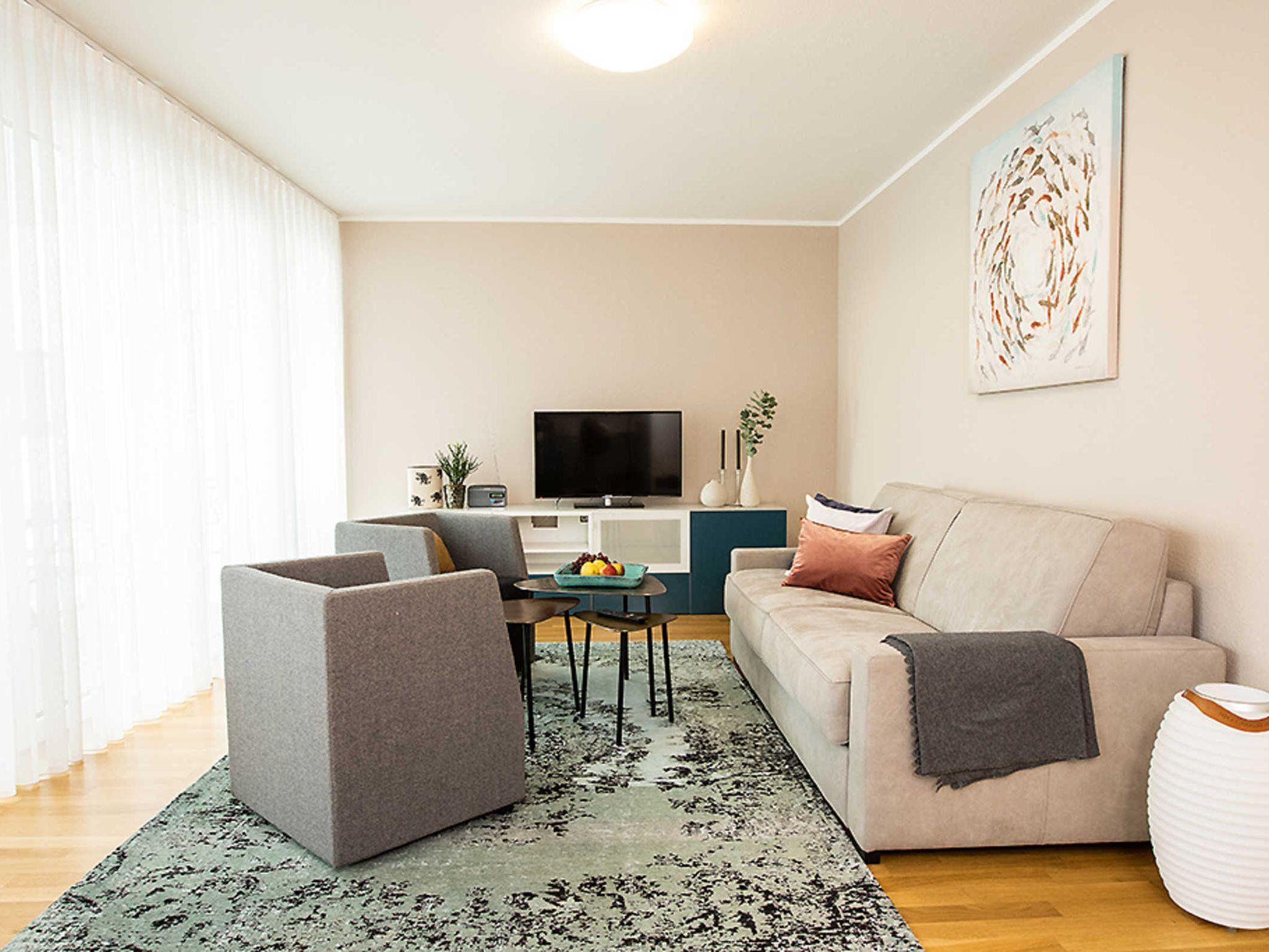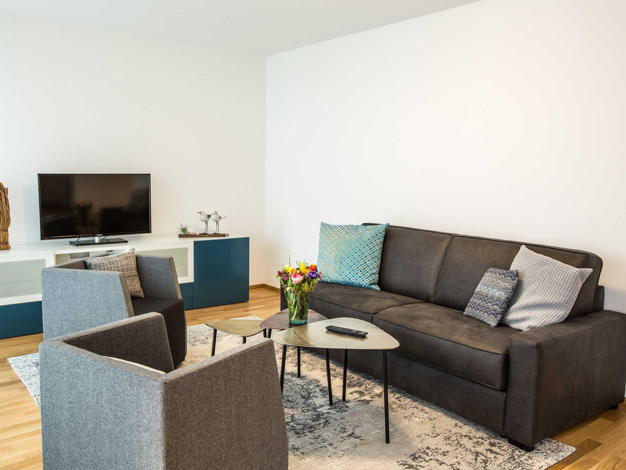 Die Neubauwohnung bietet einen Tiefgaragenstellplatz und Fahrradkeller. Die Wohnung verfügt über eine gehobene Austattung für bis zu 6 Personen, großzügiger Balkon mit Platz für bis zu 4 Personen - eigener Tiefgaragenstellplatz und Fahrradkeller direkt im Haus vorhanden.