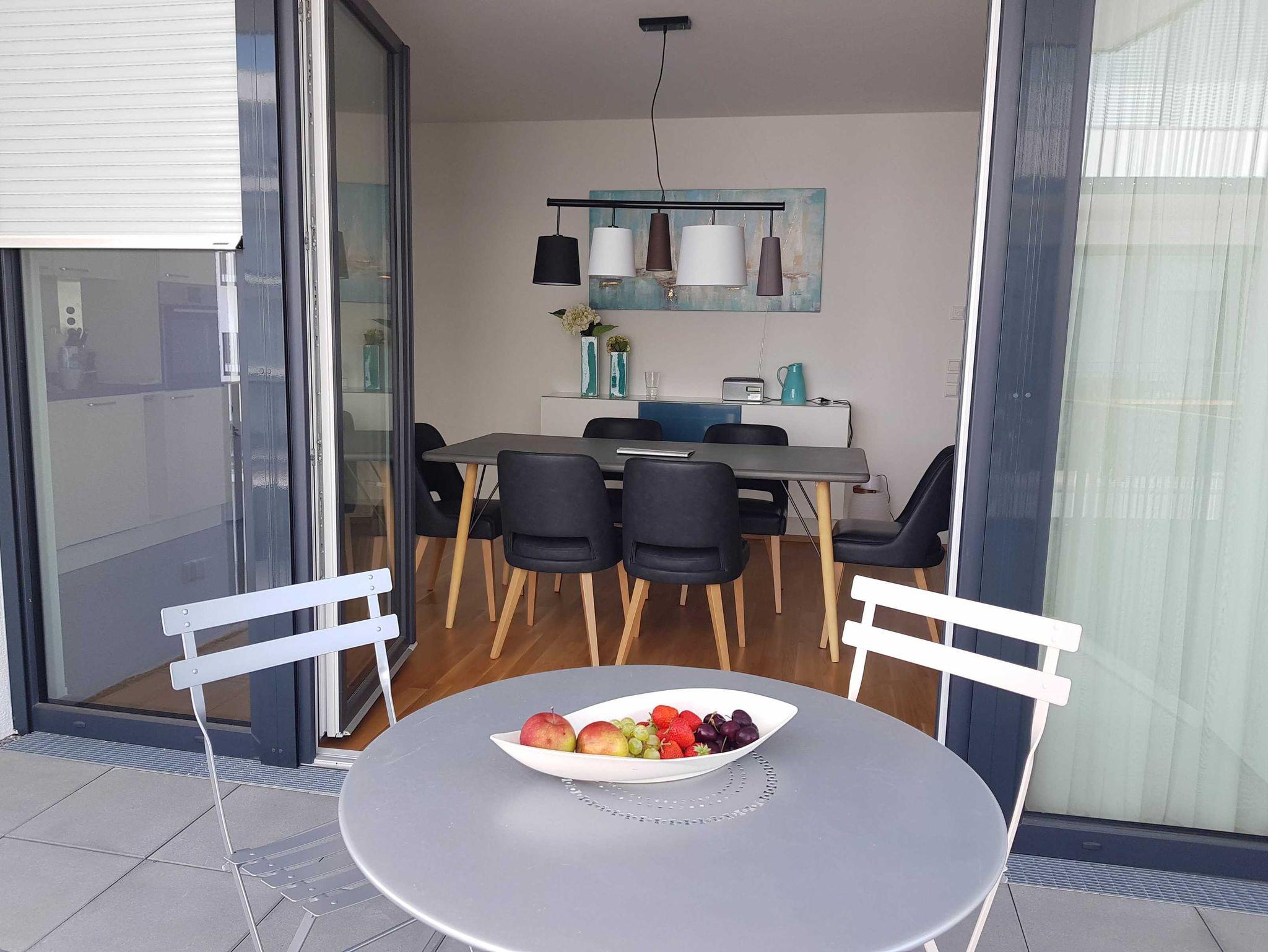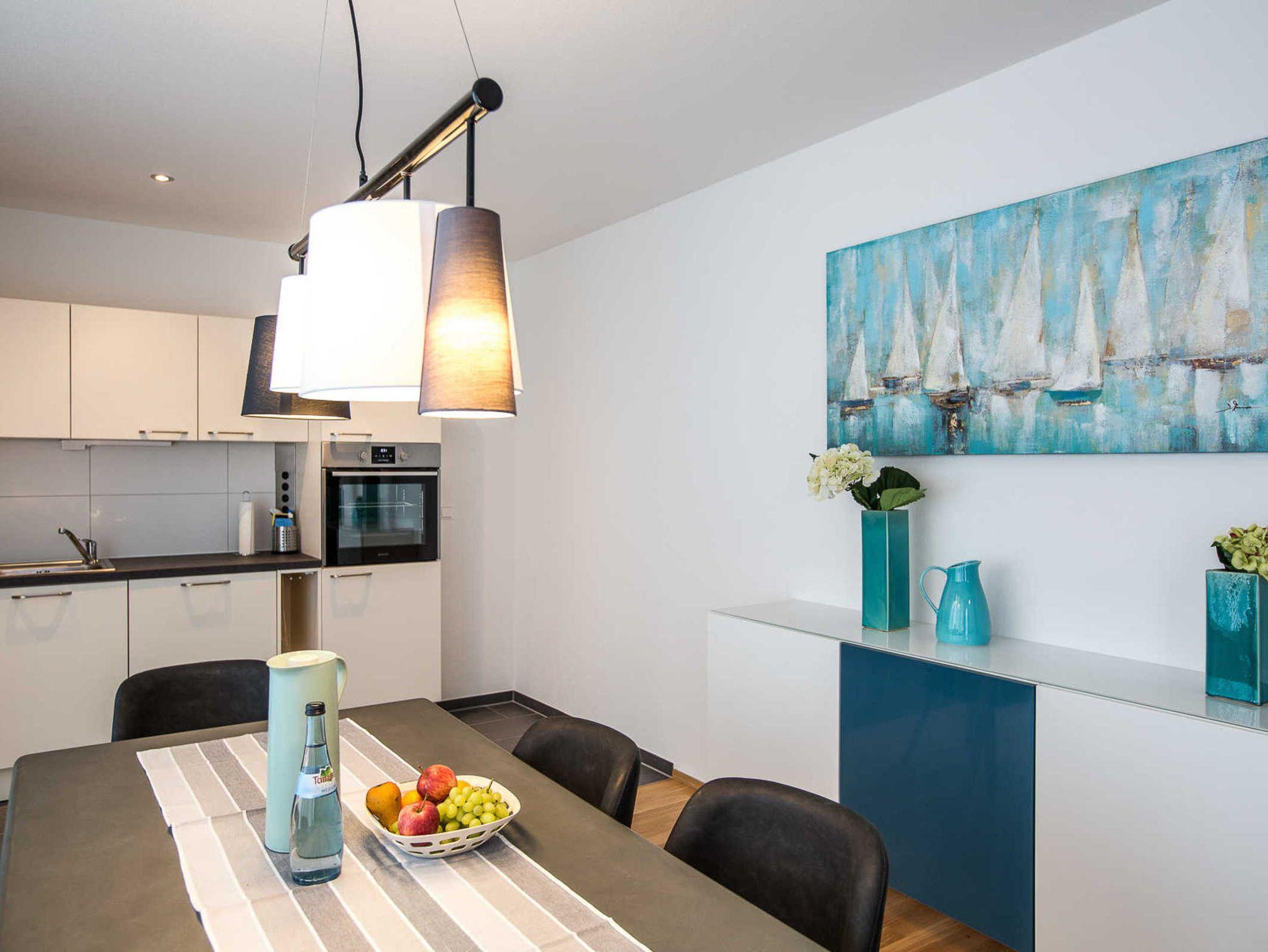 Das sehr moderne und großzüge Ferien-Apartment (70 m²) liegt in Fischbach - einem Vorort von Friedrichshafen - in fußläufiger Nähe zum Bodensee. Im Haus befindet sich ein großer EDEKA. Auf Anfrage kann gewaschen werden, Bügelbrett etc. sind vorhanden. Die Neubauwohnung bietet einen Tiefgaragenstellplatz und Fahrradkeller.
