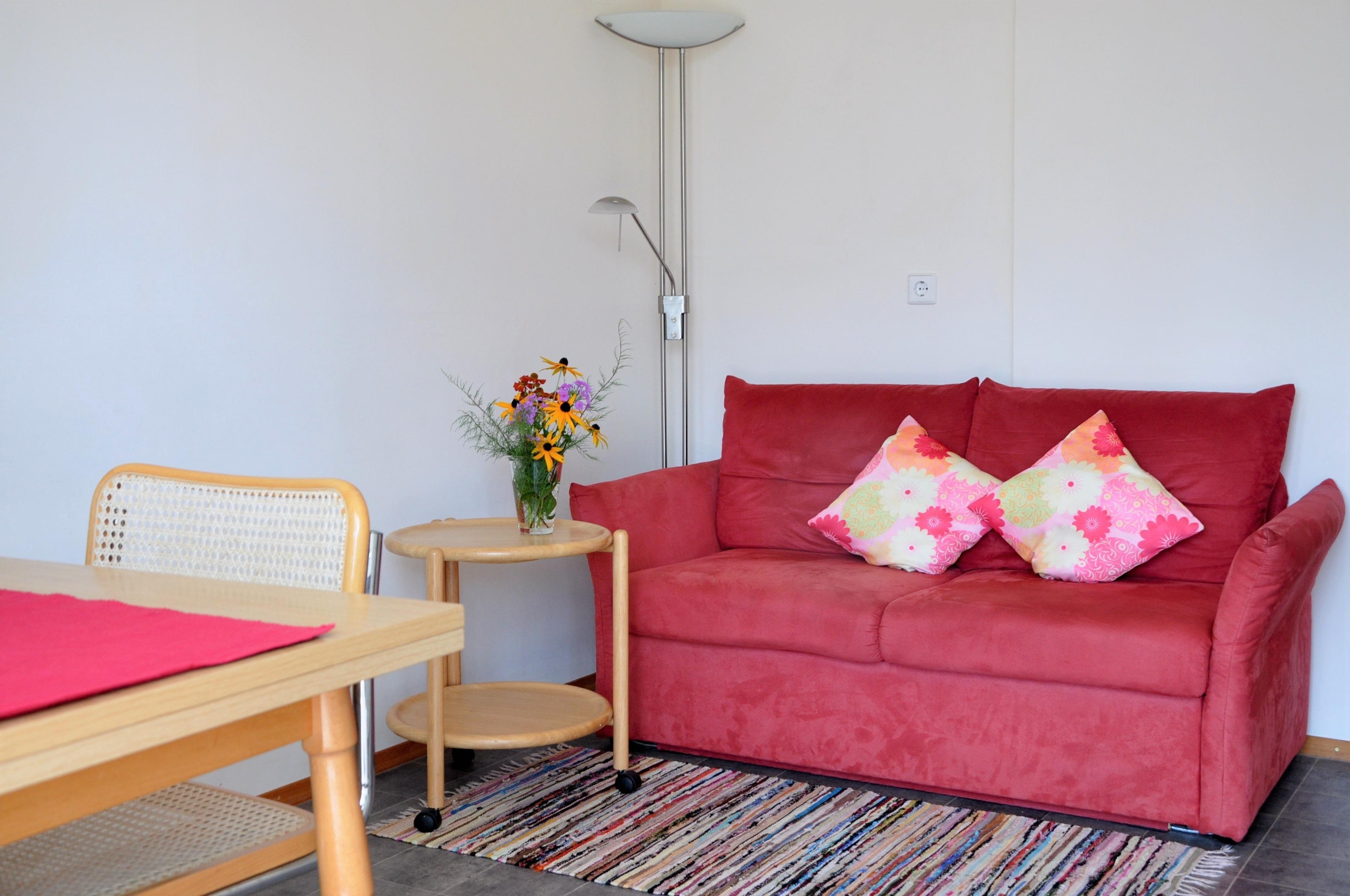 Die 2-Zimmer-Ferienwohnung im 1. Obergeschoss für 2 Personen mit großem Balkon und großzügigem Badezimmer ( eine Schlafcouch in der Wohnküche ist für 3. Person oder zwei Kinder geeignet) stehen für Ihren gastfreundlichen Urlaub bereit. Die Ferienwohnung wurde neu renoviert und ist mit schönem Balkon ausgestattet.