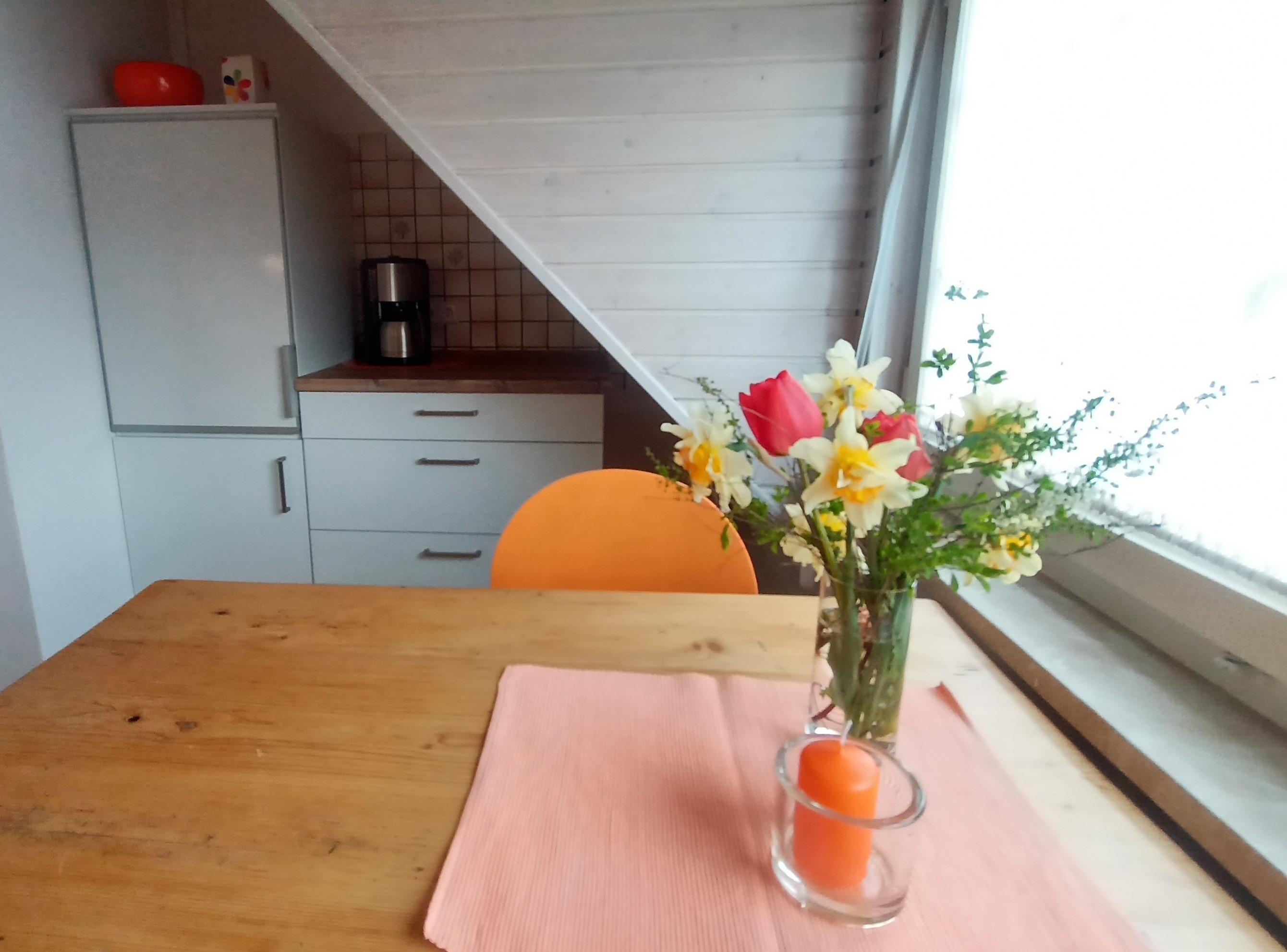Sonnige, freundliche und gut ausgestattete Dachgeschoss-Wohnung (42 qm) in zentraler und ruhiger Lage in Fischbach (westlicher Ortsteil von Friedrichshafen). Sie bietet Ihnen ein großes Wohnzimmer mit einem schönen Essplatz und einer gemütlichen Sofaecke. Zusätzlich gibt es eine neu renovierte Wohnküche, ein kleines Bad (neu renoviert) und ein getrenntes WC. Ein separates Schlafzimmer mit großem Doppelbett.