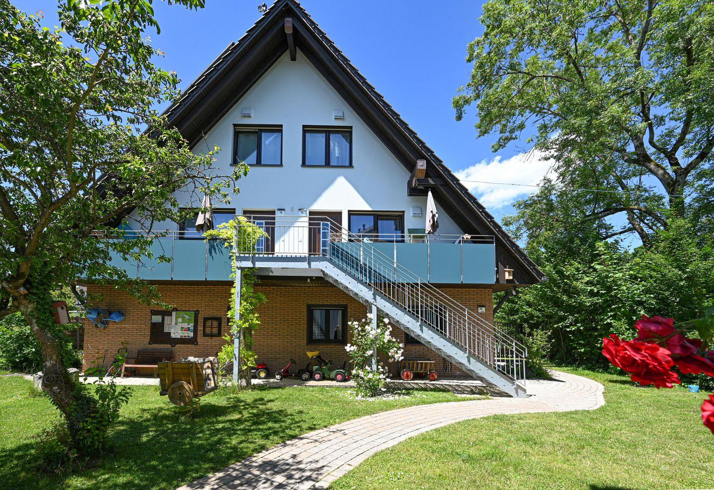 Unsere Apartmentanlage "Entdeckerferien" liegt in ruhiger, idyllischer Ortsrandlage, lediglich 4 km vom Bodenseeufer entfernt. Hier finden sich 20 Ferienapartments von der 1-Raumwohnung bis zum 4-Zimmerapartment für alle Bedürfnisse und Gruppengrößen. Hunde sind willkommen. Bis auf eines hat jedes Apartment eine abgeschirmte Terrasse oder Balkon - Privatsphäre ist bei uns Trumpf. Parallel gibt es schöne Begegnungsräume in unserem Naturgarten, rund um den Spielplatz, wo sich Kinder weg vom Straßenverkehr an Spielgeräten oder auf dem Kinderfuhrpark austoben können. Alle neun Apartments im Erdgeschoss sind barrierefrei (Eingang, Dusche ohne Stufe) und weitgehend Rolli freundlich.