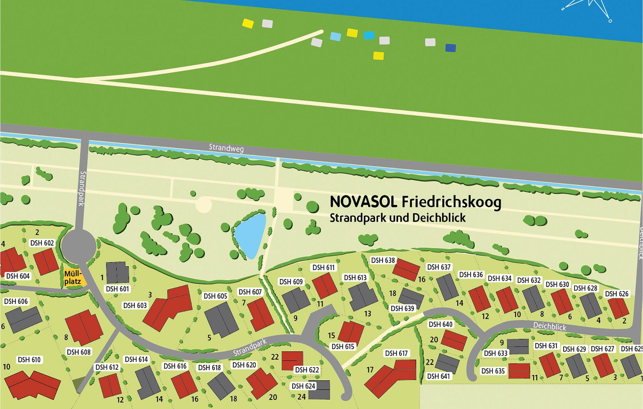 Feriehusene ligger ved siden af det lille centrum i Friedrichskoog- Spitze lige bag diget, kun få meter fra Nationalpark Vadehavet. Fra feriehusbyen er der ikke langt til Friedrichskoog med den berømte sæl-station, den store piratlegeplads, og den indendørs legeplads i Hvalbygningen.