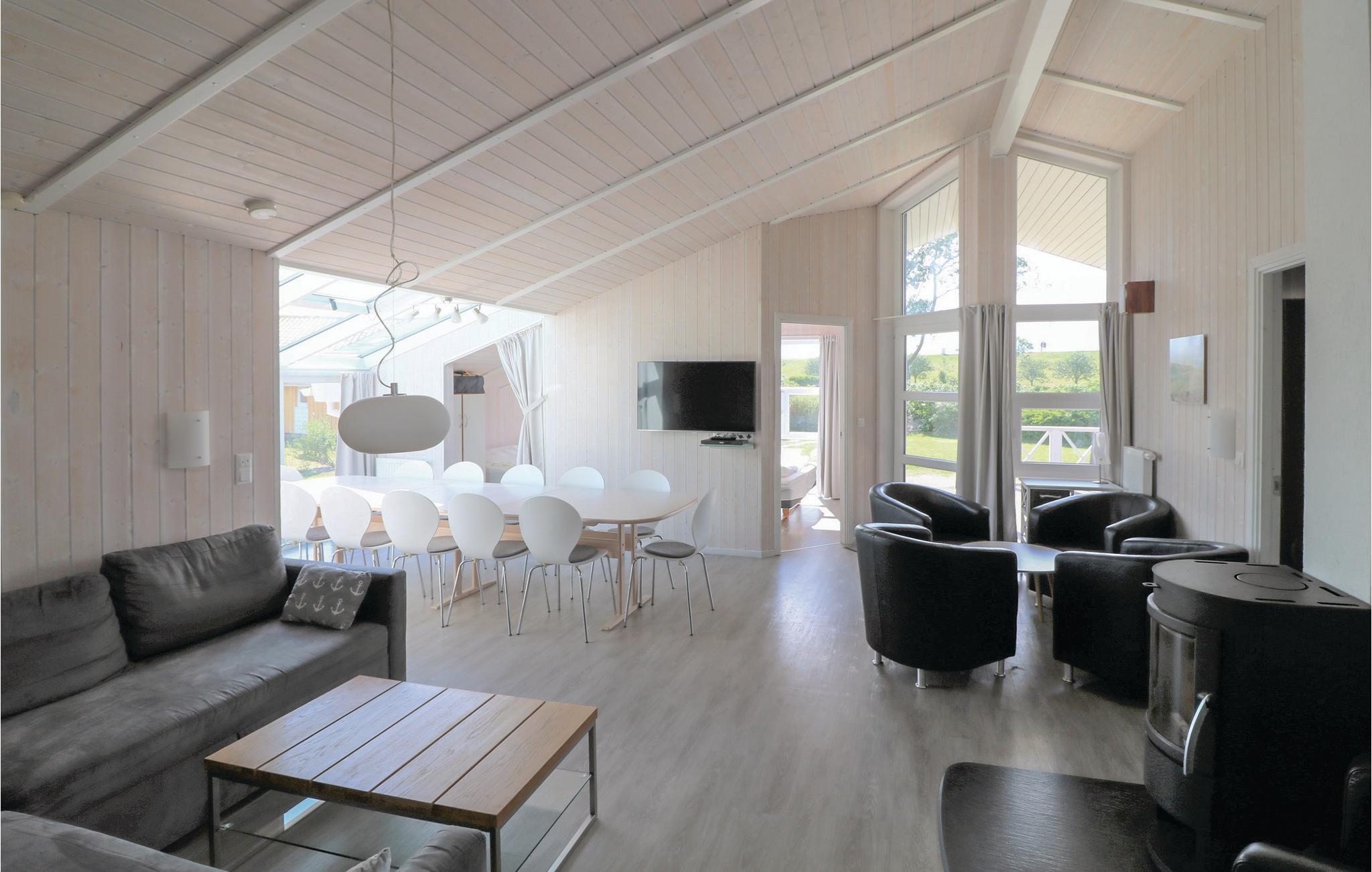 Hvis I vil holde ferie i komfortable omgivelser langt væk fra byliv, så er dette et oplagt valg. Dette store hus er ideelt indrettet til otte voksne og fire børn, I alkoven er der god plads at sove på til ’de store’. Huset kan anbefales til ferie året rundt: i whirlpoolen og saunaen er det skønt at slappe af efter en lang spadseretur på stranden, ligesom den hyggelig brændeovn indbyder til fordybelse i en snak eller i en dejlig feriebog.