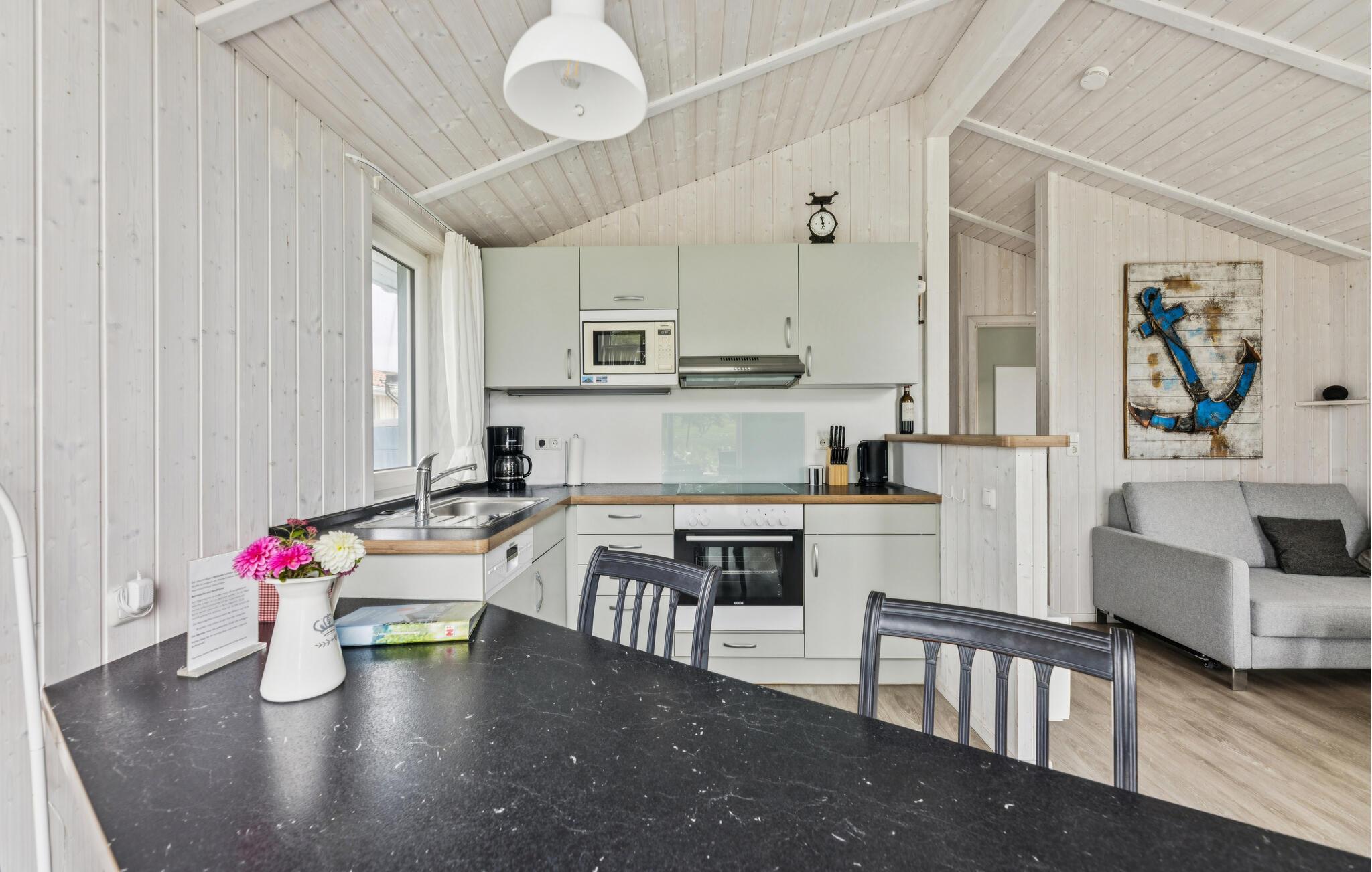 Det fuldt udstyrede åbne køkken er oplagt til hyggelige madlavningssessioner med familien. jeres private terrasse lægger op til lange solbadninger, grillmiddager eller en afslappet morgenmad med duftende rundstykker. Takket være en sovesofa i stuen kan huset rumme op til seks personer. Selv de mindste er tænkt på, da en barneseng og højstol samt en strandstol er tilgængelige gratis.