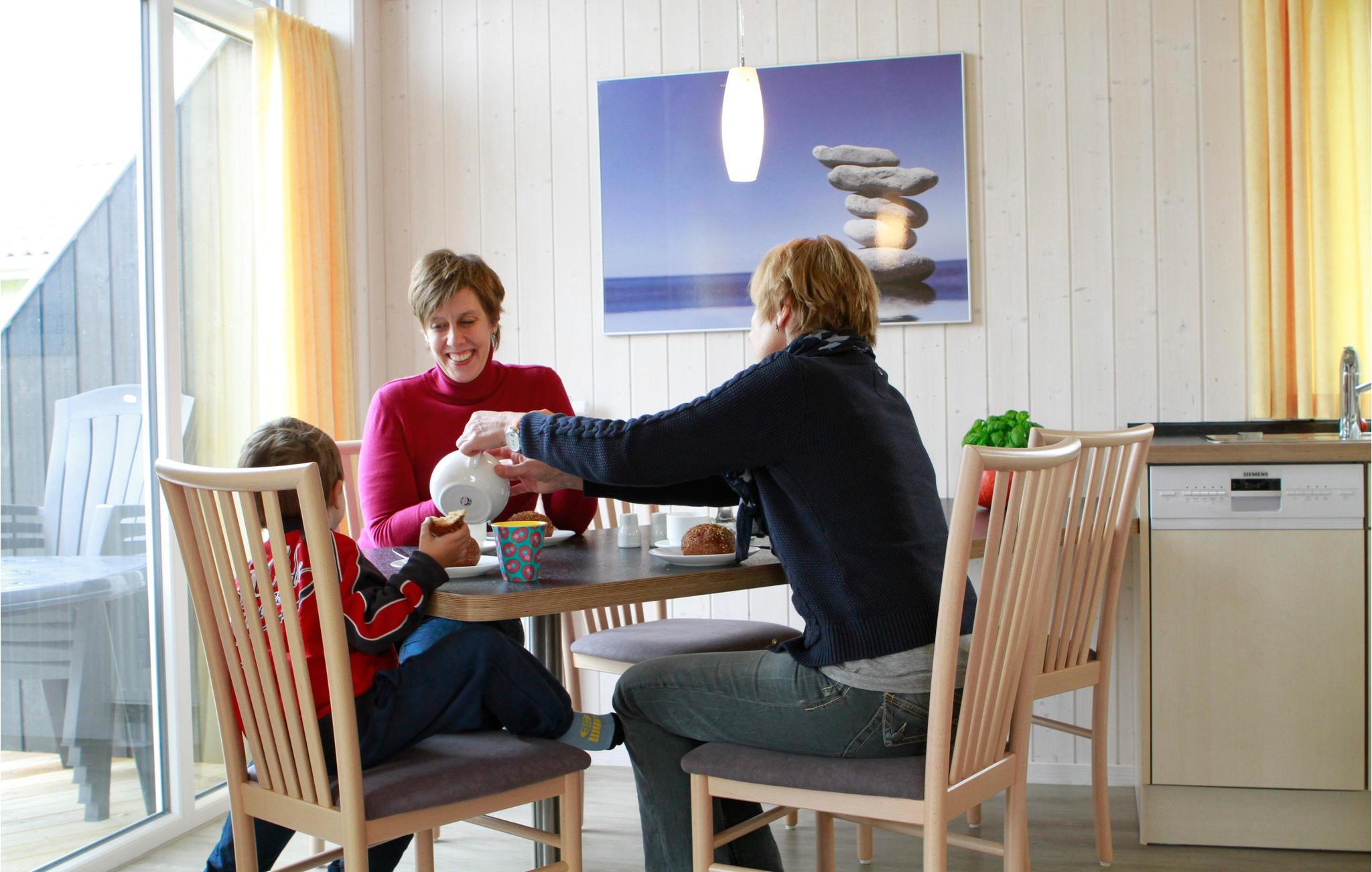 Takket være det fleksible dagsprisprogram, er det muligt at leje huset helt ned til to nætter. I stuen sørger kaminen (opvarmet med bioethanol) for hygge og varme, på den åbne terrasse kan I slappe af i behagelige havemøbler mens grillen er oplagt til nem og lækker feriemad. På familiens yngste er der også tænkt, her er både barneseng og -stol, gratis til rådighed.