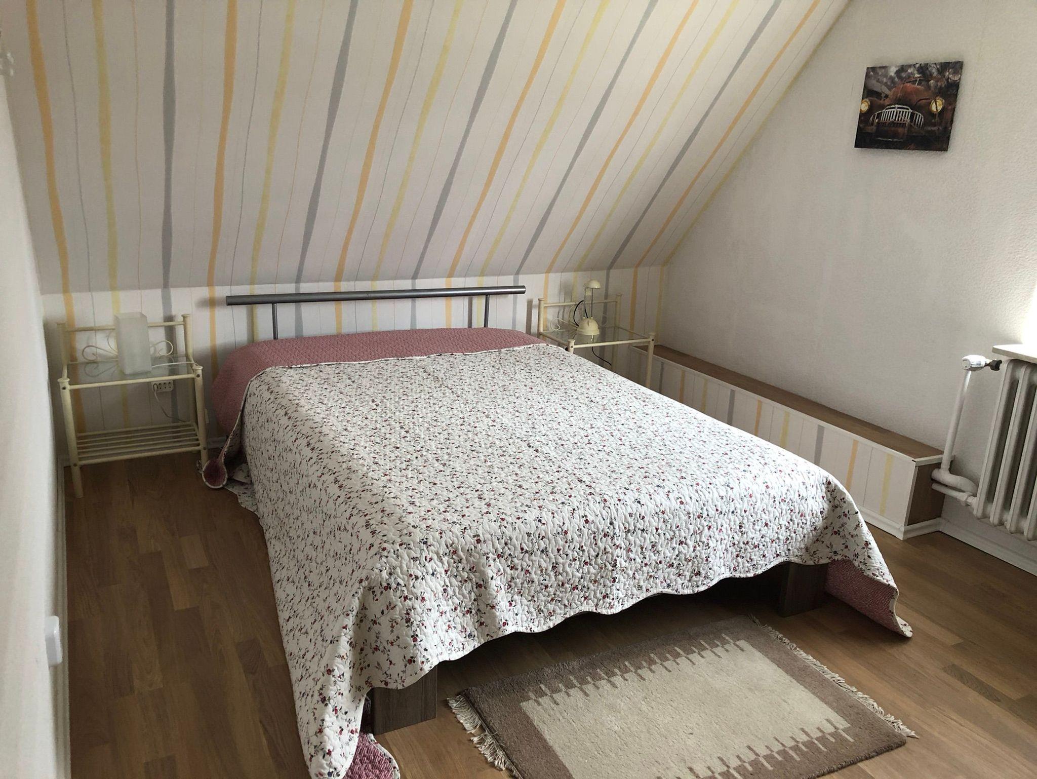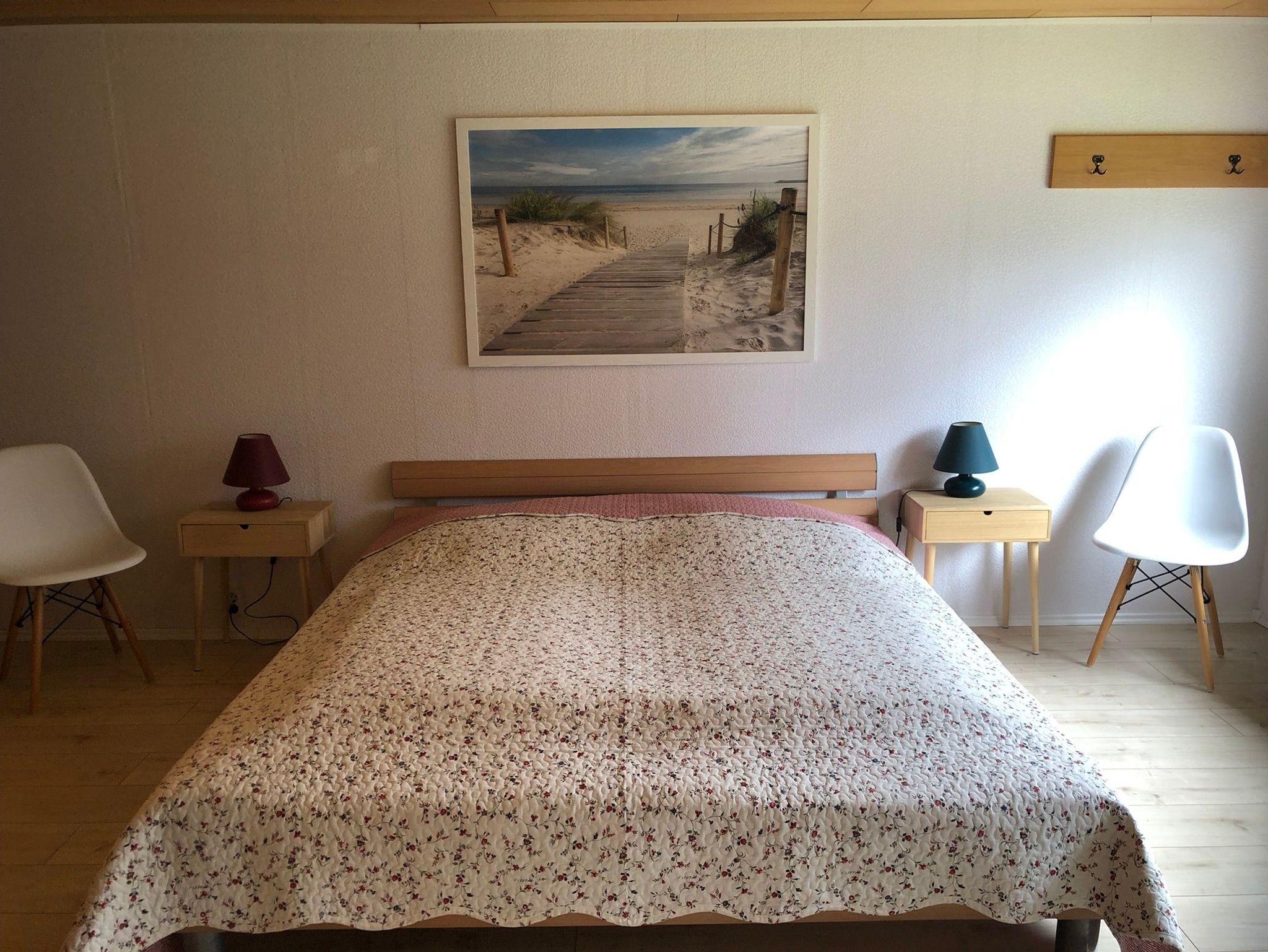• Schlafzimmer mit französischem Doppelbett (140 x 200 cm), zusätzliches Schlafsofa