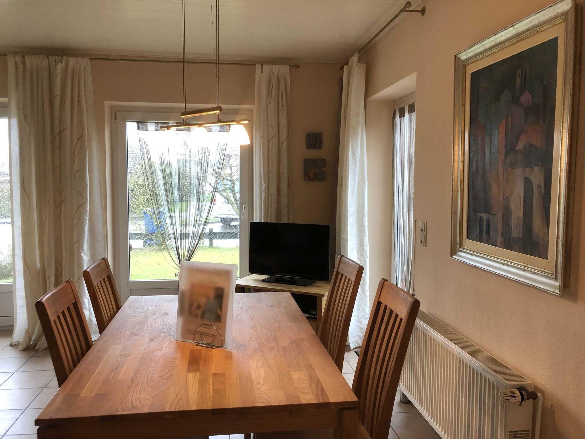 Doppelhaus. 3-Sterne-Haus nach DTV Kriterien. Herrlich gelegen, familien- und seniorenfreundlich, teilweise mit Fußbodenheizung, sehr gemütlich eingerichtet. Eigener Gartenanteil. Liegewiese, Terrasse, Gartenmöbel, SAT-TV, Radio, WLAN, kinderfreundliche Ausstattung mit Kinderbett, -hochstuhl, Kinder-WC-Sitz, Treppensicherung unten usw., Zentralheizung, Fahrradgarage für max. 2 Fahrräder, PKW-Stellplatz.