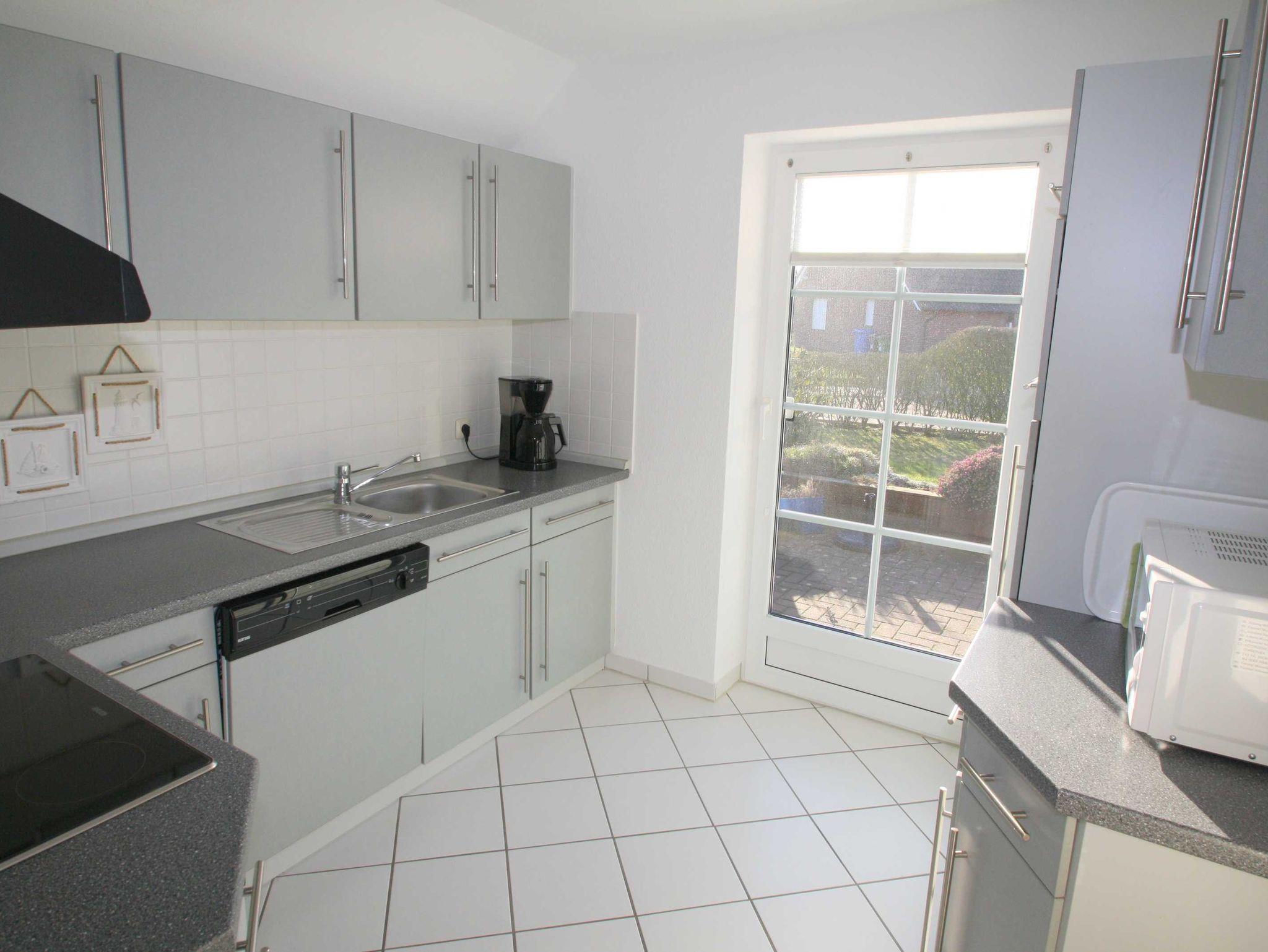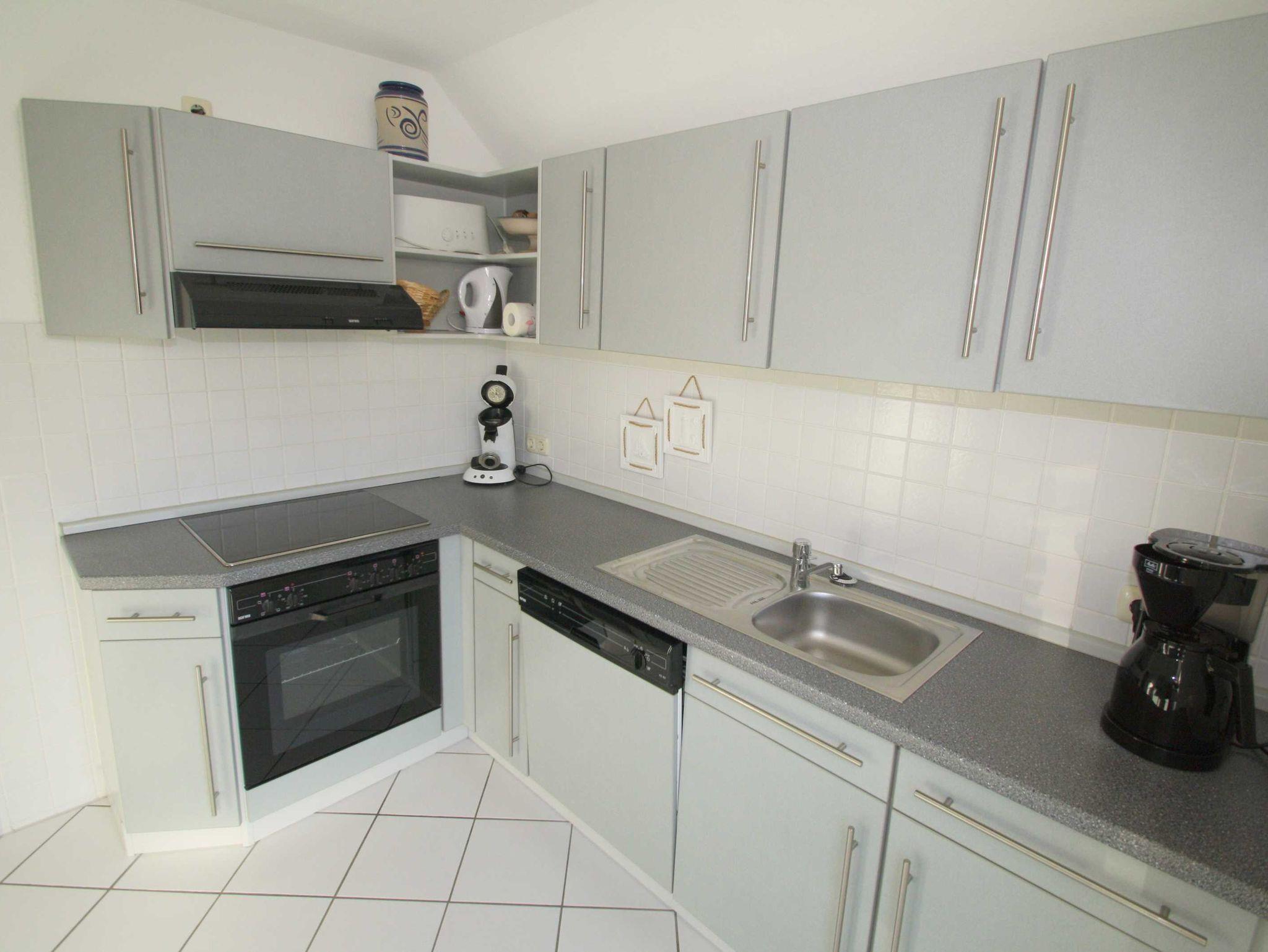 Separate Küche: Geschirrspüler, Kühlschrank mit 3-Sterne-Gefrierfach, Umluft-Backofen, 4-Platten-Cerankochfeld, Mikrowelle