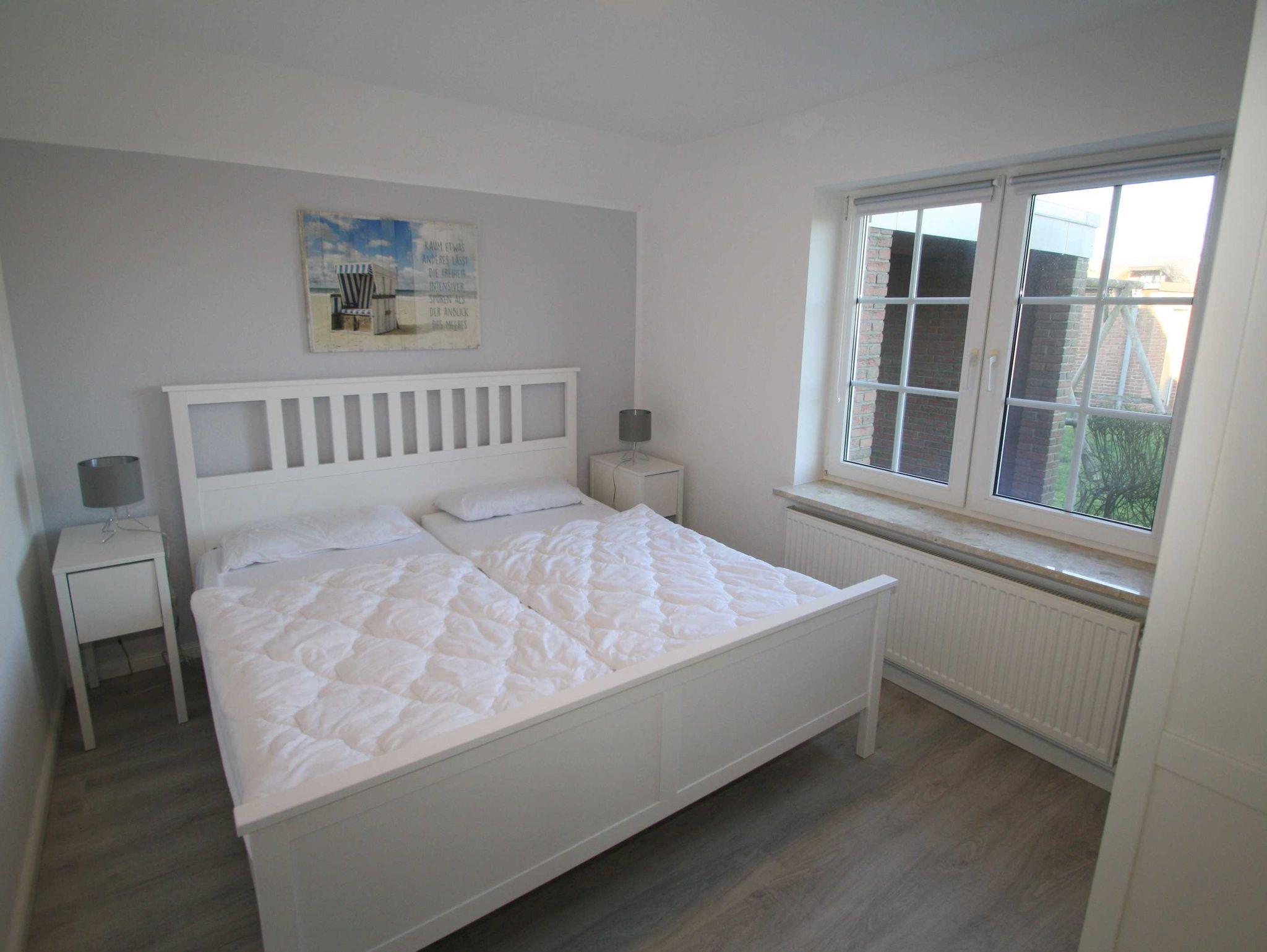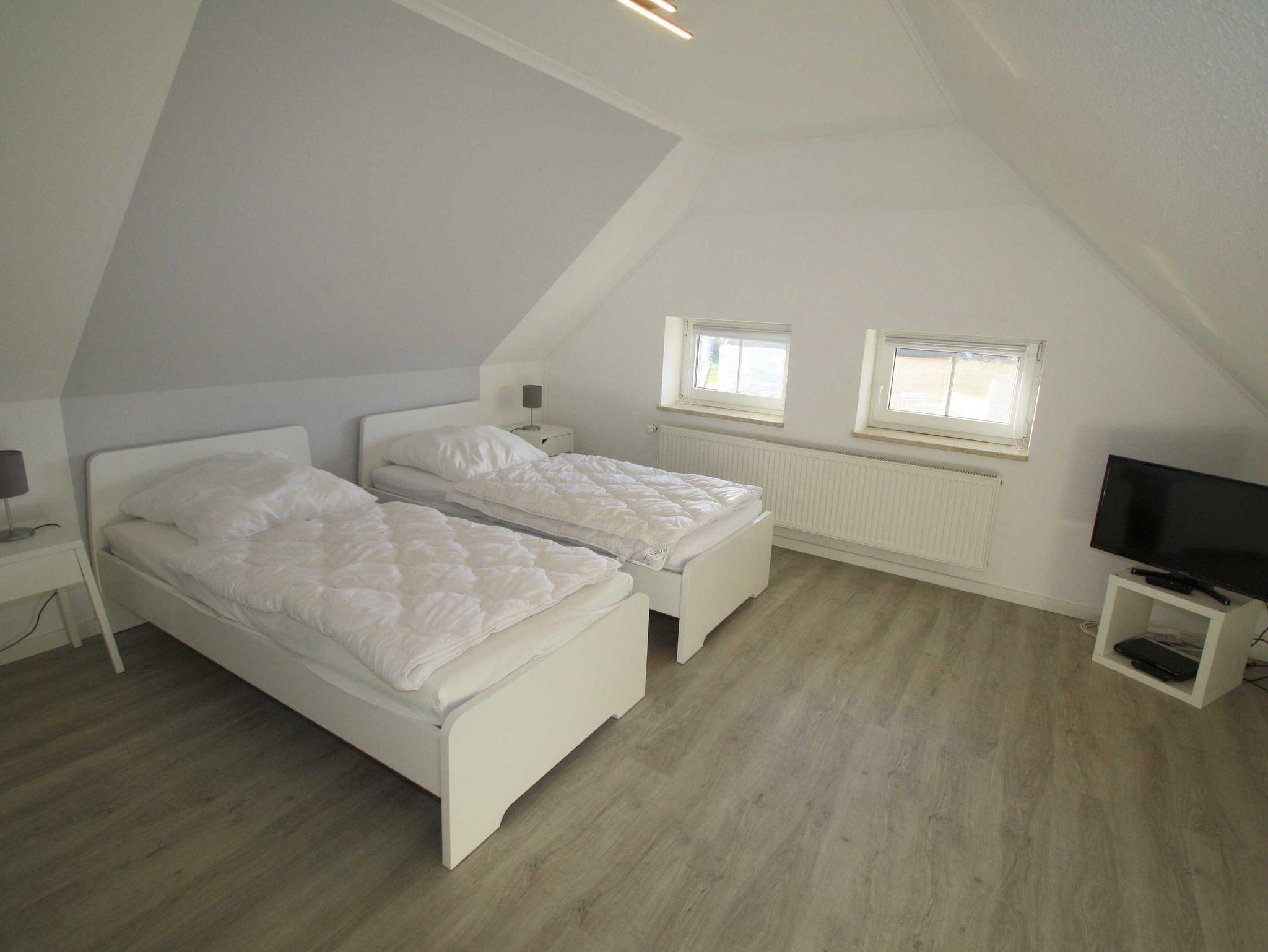 1 Schlafraum mit 2 Einzelbetten (kann zu Doppelbett zusammengestellt werden) und TV