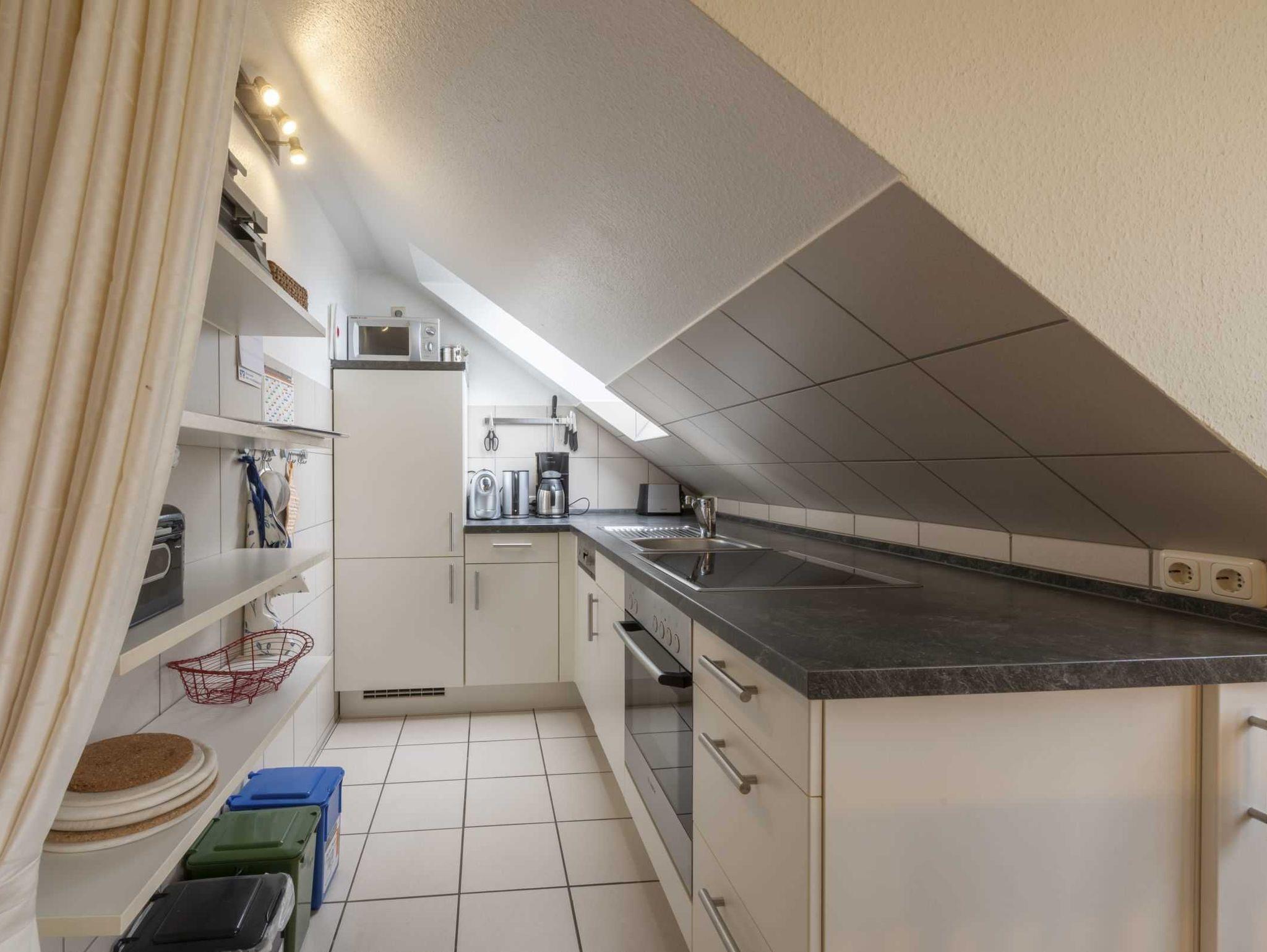 Obergeschoss mit Balkon für 2-5 Personen inkl. Gartenmöbel, Liegewiese, Strandkorb und Sandkiste. Wohn-/Schlafraum, Schlafraum, Küchenzeile, Dusche/WC. Sat-TV, Telefon, Kinderbett und Kinderhochstuhl.