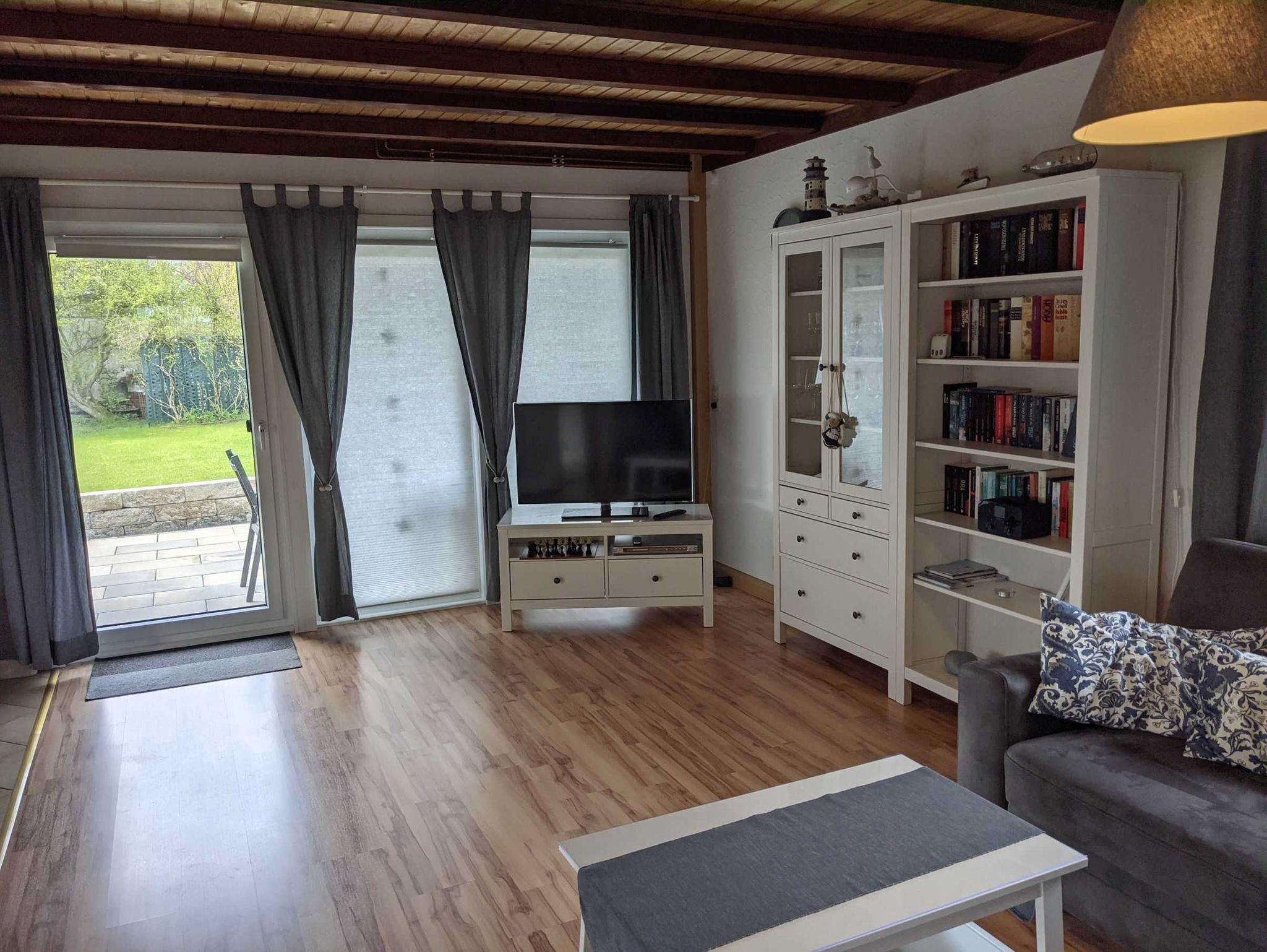 Aufgeteilt in Wohnzimmer und Essbereich, separate voll ausgestattete Küche, 2 Schlafzimmer, DU/WC, Gäste-WC, Garten, Terrasse und Balkon.