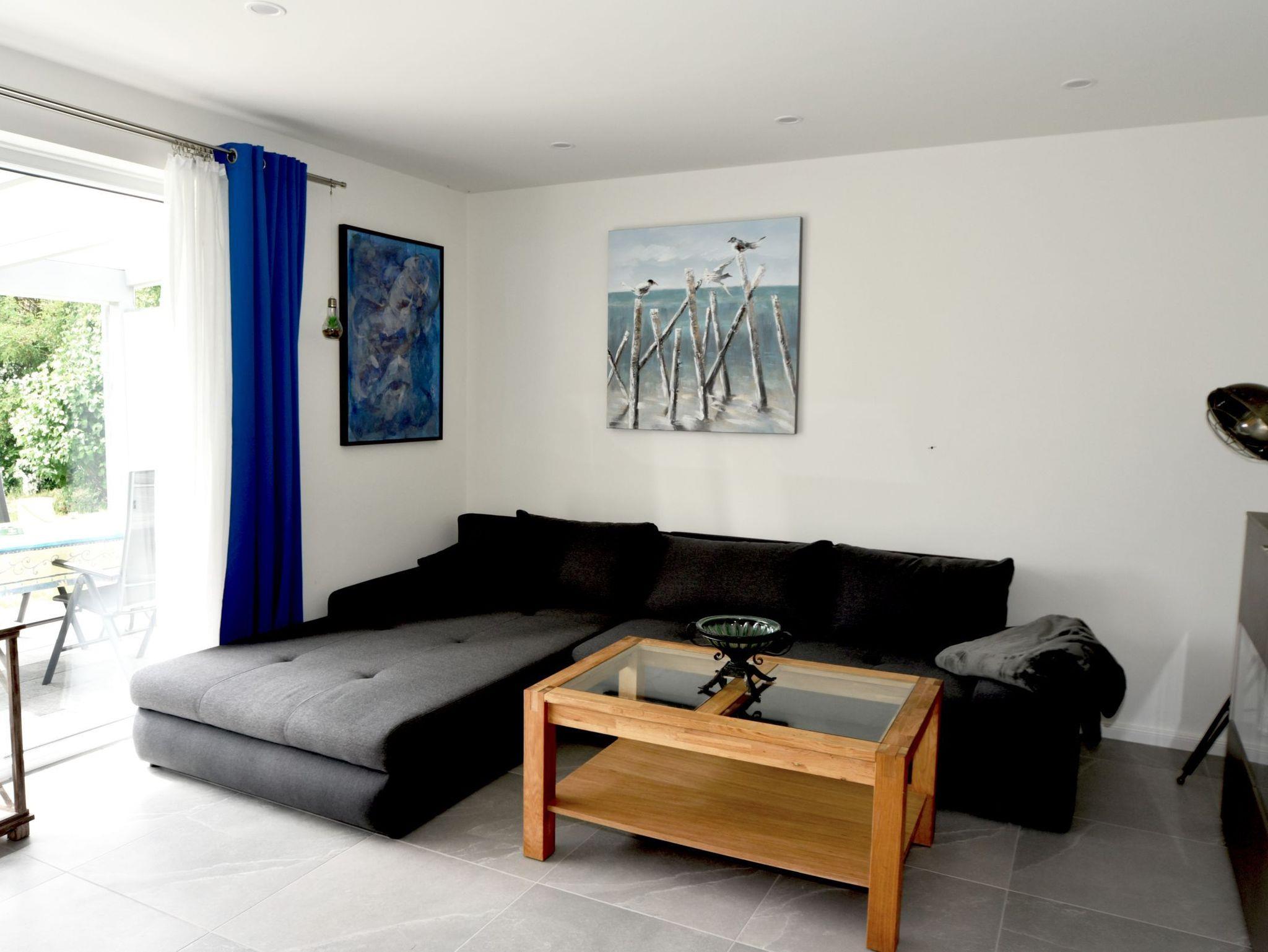 Die Wohnung B ist modern eingerichtet für bis zu 4 Personen. Mit offener Küchenzeile inkl. Backofen, Mikrowelle und Spülmaschine. Im zentralen Familienzimmer mit Schlafcouch, Sitzecke und Essplatz bieten 55 Zoll SAT-Smart-TV, Spielkonsole und DVD-Player viele Möglichkeiten für Indoor-Unterhaltung. Separates Schlafzimmer mit Doppelbett und Fernseher. Helles Badezimmer mit Dusche/WC.
