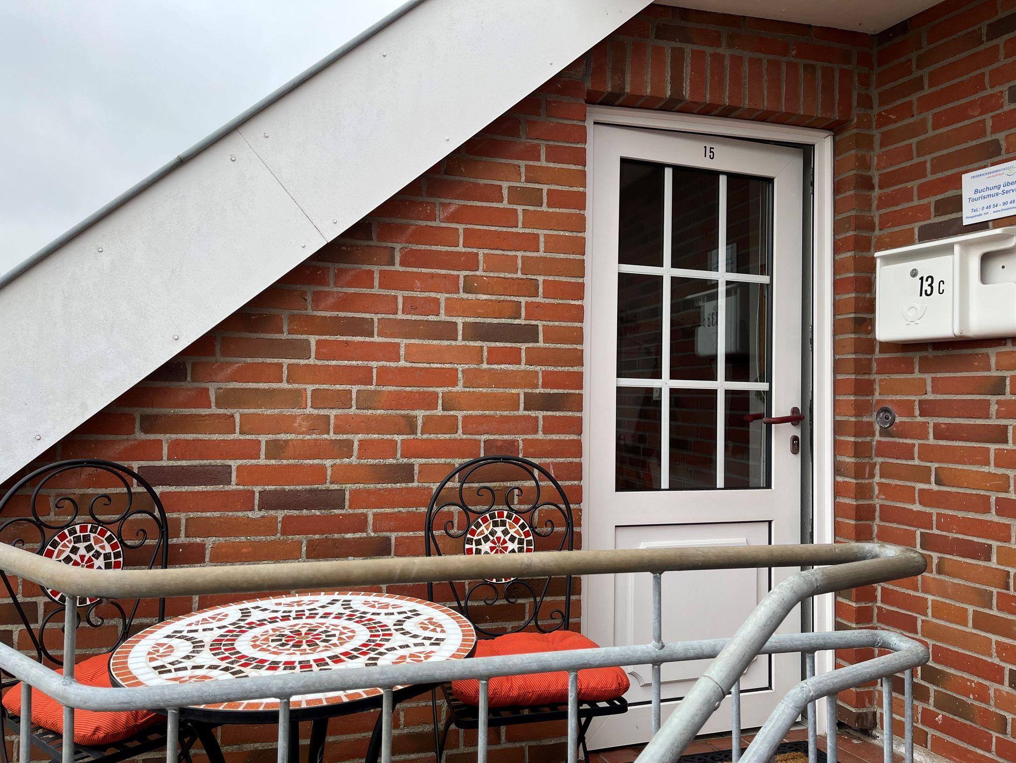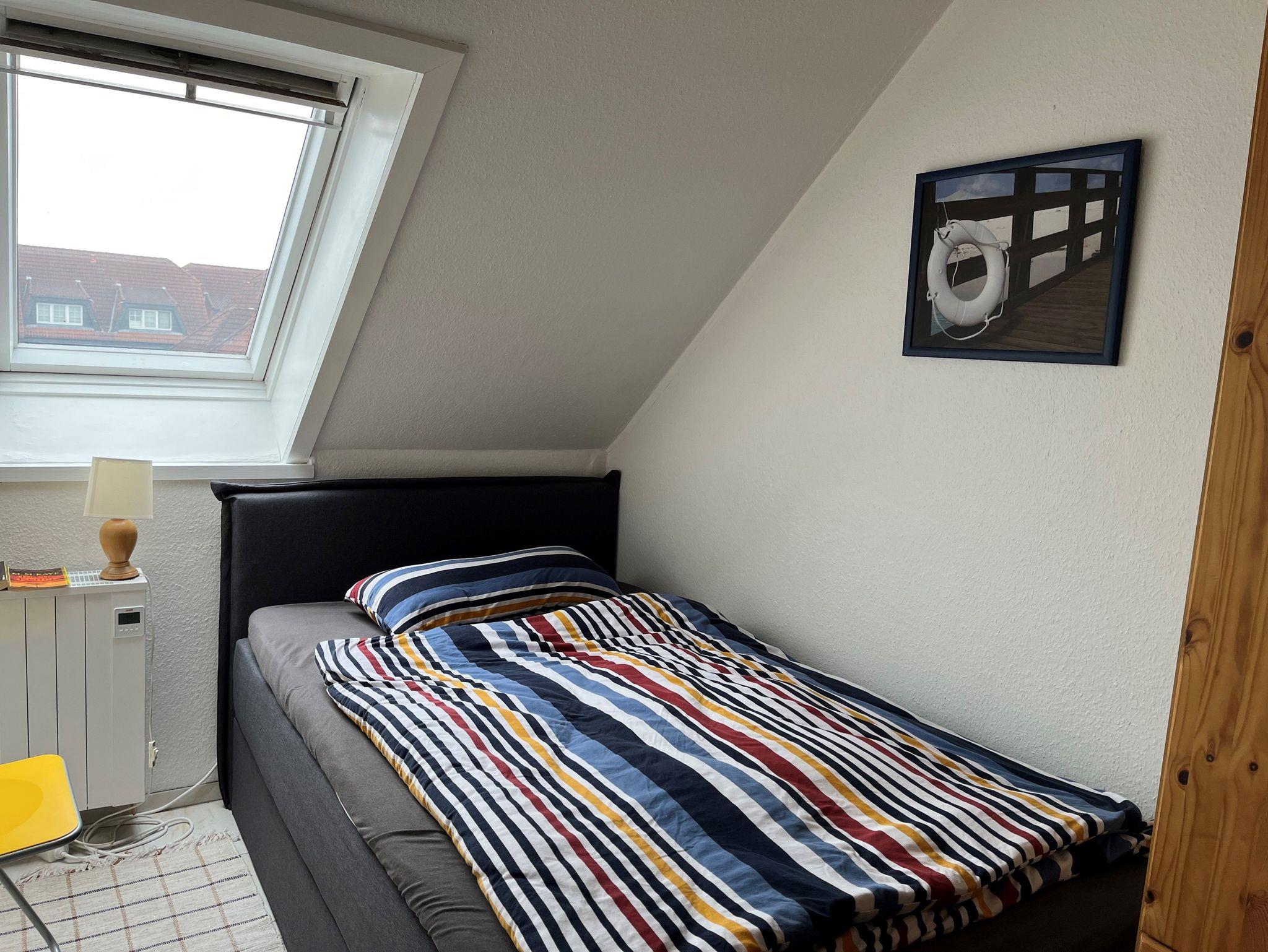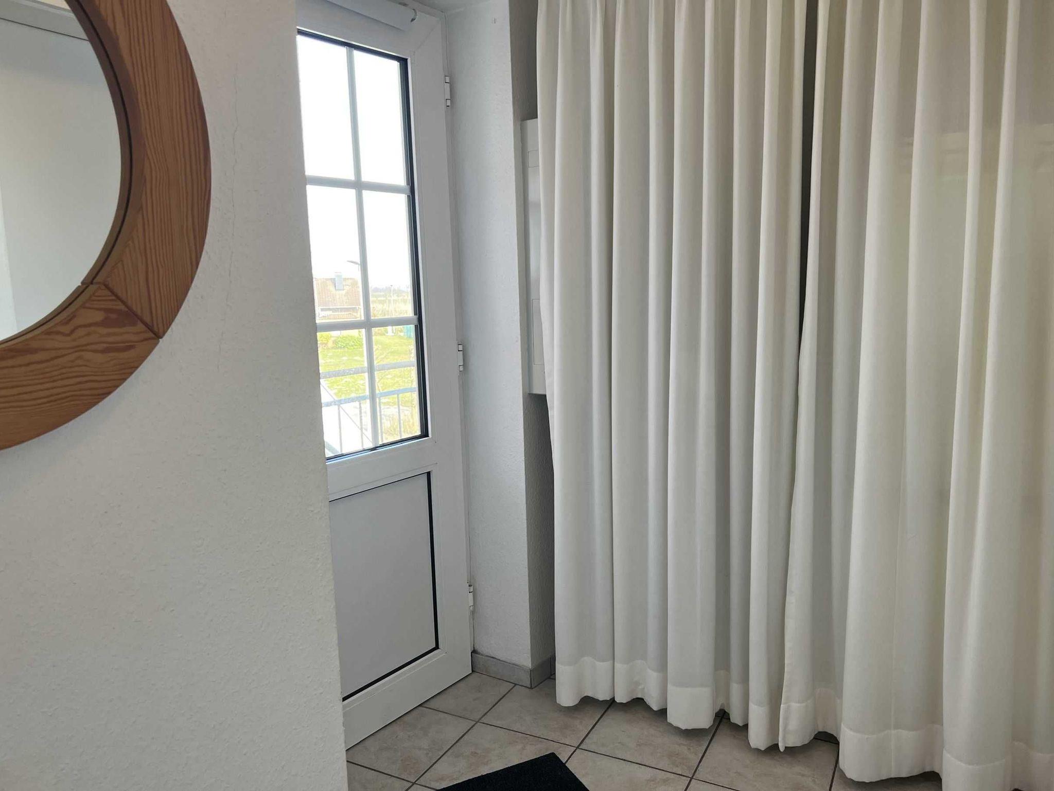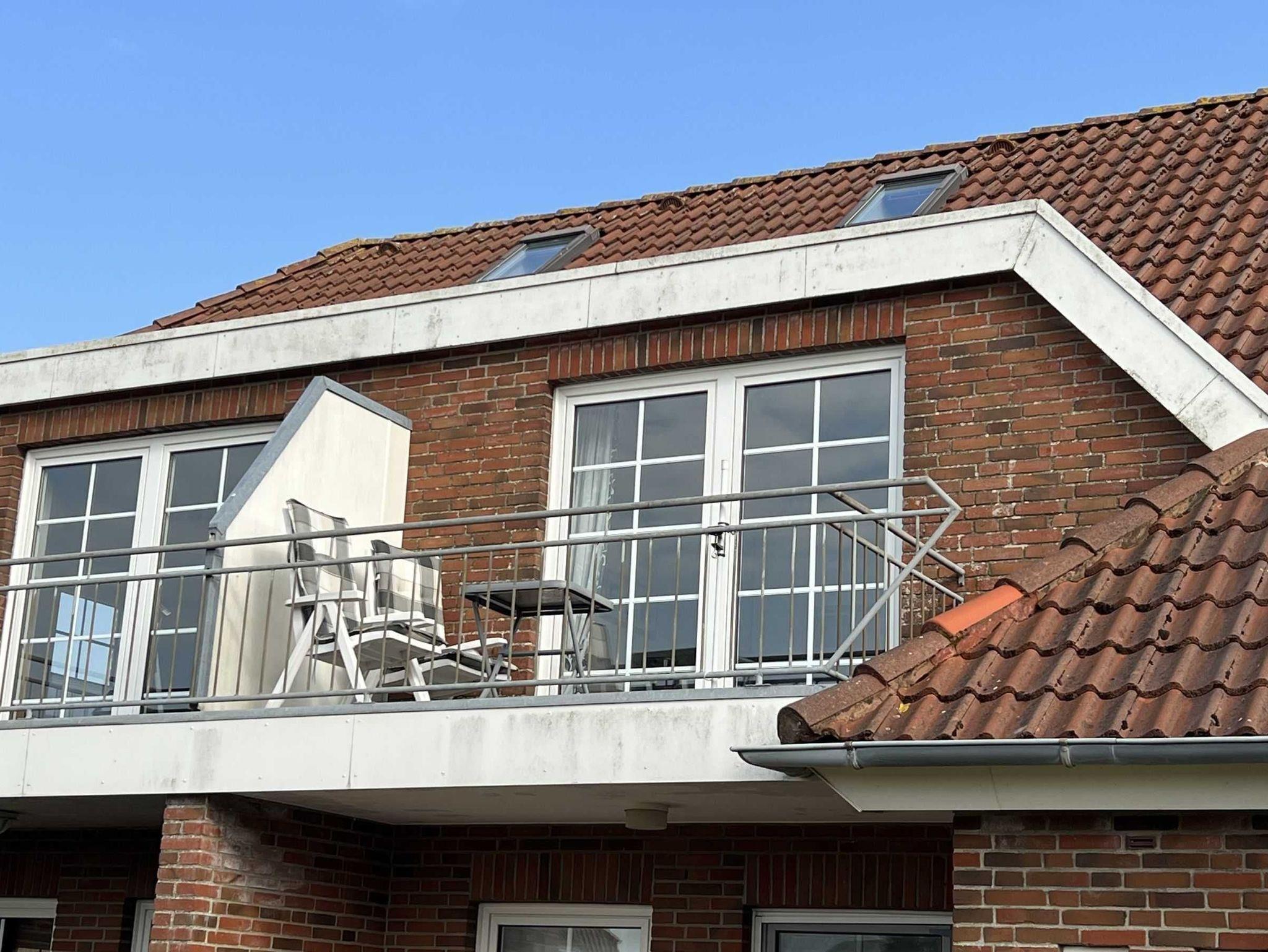 Gemütlich eingerichtete 45 qm Ferienwohnung im 1. Stock einer kleinen ruhigen Wohnanlage für bis zu 3 Personen. Balkon mit Blick auf den Deich im Hintergrund.