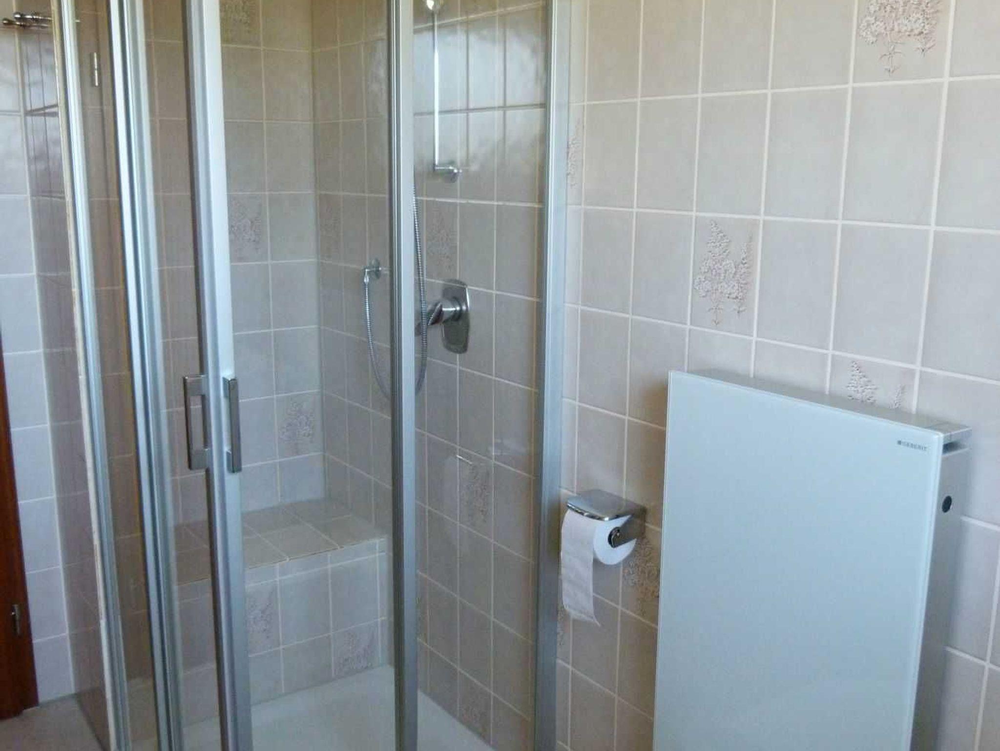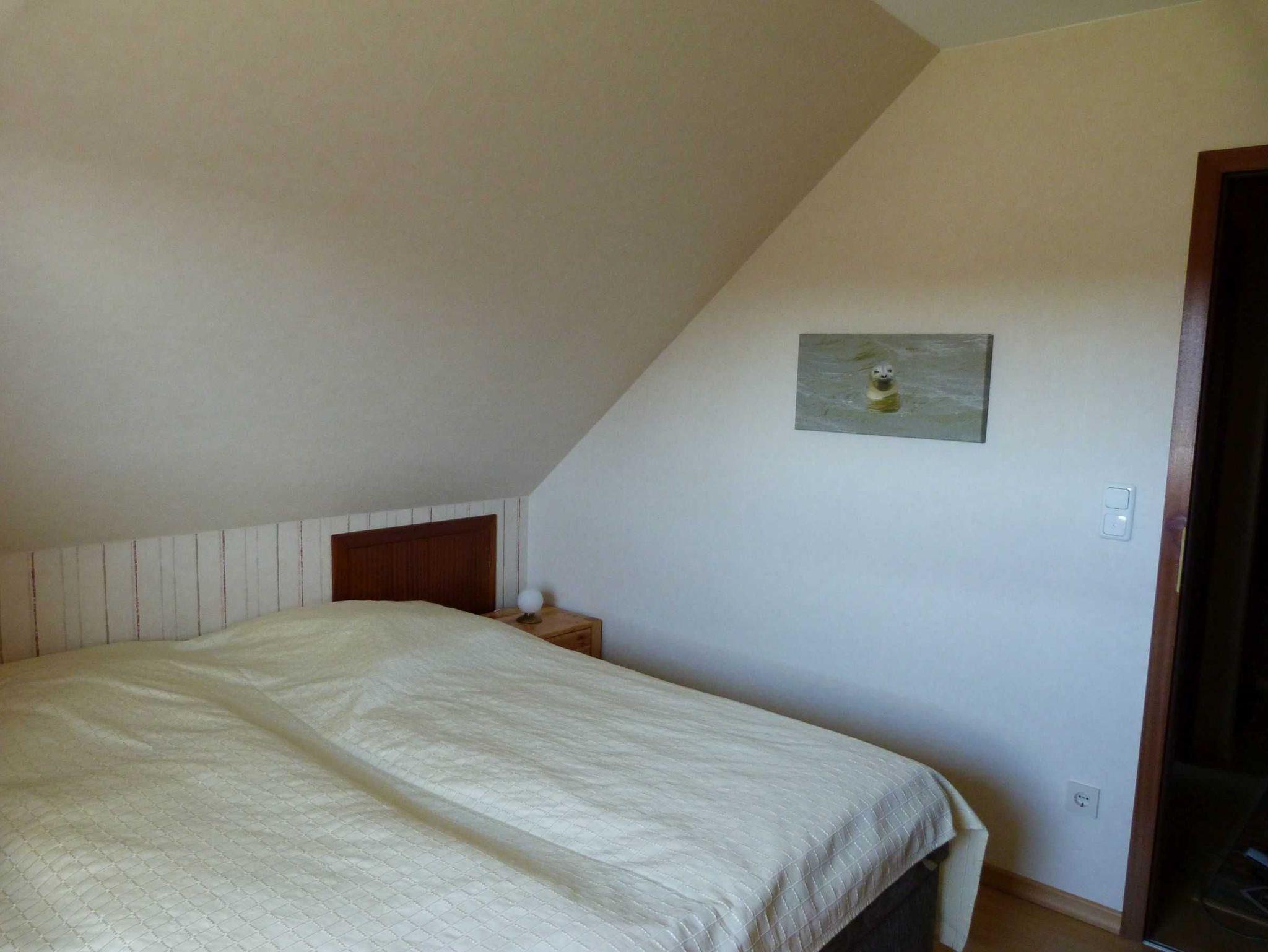 In der 1. Etage befinden sich ein großes Schlafzimmer mit Doppelbett und Kinderbett, ein kleineres Schlafzimmer mit 2 Betten sowie eine Toilette. Im Erdgeschoss gibt es ein geräumiges Wohn-/Esszimmer, eine separate Küche, ein Duschbad mit WC und einen großen Flur.
